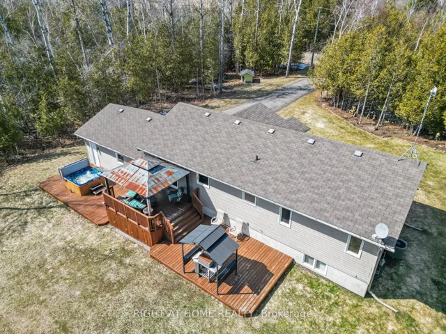 +"PublicRemarks": "This stunning 3+1 bedroom, 3 bathroom raised bungalow, built in 2012, offers the perfect blend of comfort, style, and privacy. Nestled on a picturesque 1-acre treed lot, the property features lush, manicured gardens and exceptional outdoor living spaces. A charming stamped concrete walkway leads to the welcoming front entrance, complemented by tasteful landscaping. Inside, the open-concept living room, dining room, and kitchen are highlighted by a soaring cathedral ceiling, rich hardwood floors, and a spacious center island, step outside to enjoy large deck complete with hot tub ideal for entertaining and everyday living. The generously sized primary bedroom includes a 3-piece en-suite & double closet. The fully finished lower level features luxury vinyl flooring throughout, a fourth bedroom, 3 pc bathroom and a large rec room with cozy gas fireplace and above-grade windows that fill the space with natural light. Convenient walk-up access from utility room into the garage adds excellent functionality. Ideally located for commuters this home is the perfect blend of rural living and commuters convenience, a short drive to Lindsay and Port Perry with quick access to Highway 35 and easy connections to Highway115 and Highway 407."