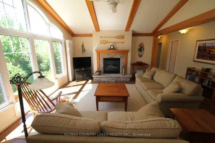 +"PublicRemarks": "This stunning waterfront property features an open-concept kitchen, dining, and living area with cathedral ceilings, floor-to-ceiling windows showcasing breathtaking lake views, a cozy propane fireplace, hardwood floors, and a walkout to a spacious rear deck complete with a power awning, perfect for entertaining or relaxing by the water. The primary bedroom boasts a 3-piece ensuite, dual closets, and picturesque water views. A convenient main floor laundry/mudroom is located off the front entrance and provides access to the crawl space. Outdoor features are equally impressive, including a wet boathouse with electric boat lift, concrete retaining wall, and a 60 ft aluminum dock. Attached to the boathouse is a versatile 12' x 14' bunkie or storage shed. Set on a well-treed lot for added privacy, this property offers no neighbors to the west and is located on a quiet cul-de-sac with minimal traffic. Additional features include a Hi-Tec security monitoring system, front and rear security cameras, water treatment system, propane forced air heating, central air conditioning, generator backup, and a dual sump pump system with battery backup. Being sold turnkey, this exceptional home includes all high-end furnishings and select antiques. Canal Lake offers swimming, fishing, and endless boating as part of the Trent-Severn waterway system. This property offers the perfect country escape for your year-round home or cottage within 1.5 hours from the GTA."