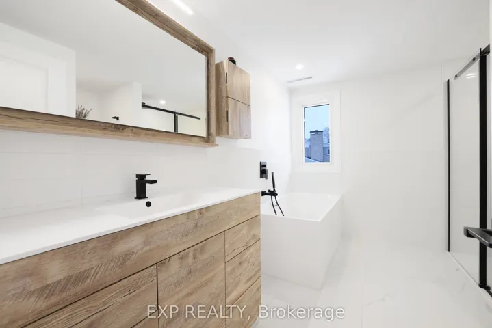+"PublicRemarks": "Not just renovated - refined, reimagined, and ready to impress. Set on a generous corner lot in one of the area's most desirable neighbourhoods, this fully transformed home offers both presence and practicality, with dual driveways, an attached garage, and a layout designed for modern living. Inside, a Scandinavian-inspired palette of soft, creamy tones creates a calm, cohesive feel throughout. The main level features a bright living room that flows into a beautifully redesigned kitchen with quartz countertops and stainless steel appliances. The spacious dining area extends through patio doors to a large outdoor patio - complete with pergola which steps onto a newly built deck and privacy wall - creating a seamless extension for outdoor entertaining. A warm sitting area with a stone fireplace adds character and flexibility to the space. The split-level design offers architectural interest and function, including a light-filled loft ideal for a home office or optional bedroom. Upstairs, the fully renovated main bath showcases a soaker tub, walk-in tiled shower, and timeless finishes. The primary bedroom is generously sized, with additional well-appointed bedrooms nearby. The fully finished lower level adds versatility with a family room, extra bedroom, and 3-piece bath - perfect for guests, teens, or multi-generational living. With a brand new roof (2026) and a complete interior renovation, this home offers true peace of mind and a move-in-ready lifestyle. Ideally located, walkable to downtown shops, restaurants, and everyday conveniences and steps to Central Public School. Refined, and entirely renewed - this is a home that quietly stands apart. Experience it in person - private showings available by appointment."
