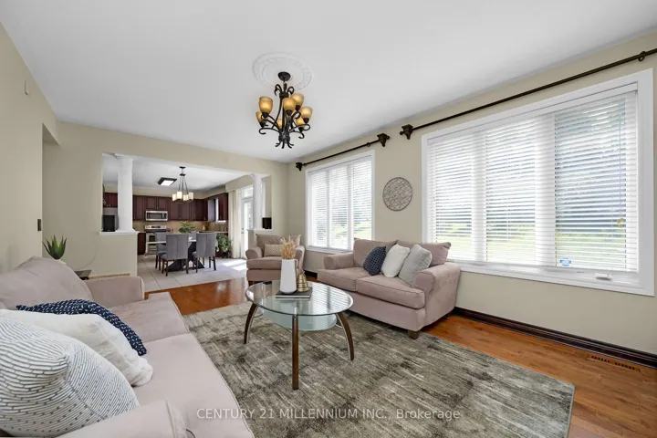 +"PublicRemarks": "If space is what you are looking for, then look no further! Drive up the long driveway into this huge 0.8-acre lot, full of privacy and lovely landscaping. Wander up the front walkway to the double door entrance and walk into over 2,900 square feet of above grade space. Floor to ceiling windows bring in all the warm sunlight with 9-foot ceilings for open, airy living. Open combination of dining and living room with gleaming hardwood floors. Kitchen is as functional as it is beautiful with quartz counters and stainless-steel appliances. Lots of room for a kitchen table that walks out to the patio or into the warm, cozy family room. Also on the main floor is a powder room, laundry and mudroom to garage. A super cool private little porch is accessed from the front hall. Upstairs is an enormous primary and ensuite, plus walk-in closet. 3 more generous bedrooms and a full bath. The basement is just ready for your creative juices to flow. Perched up high in this family friendly neighborhood, only 40 minutes to the GTA and 20 to the GO train. Small town living in a big space! **EXTRAS** AC (2023), Freshly Painted Throughout (2024), Roof (2022), Quartz Countertops in Kitchen (2016), Deck (2015)"