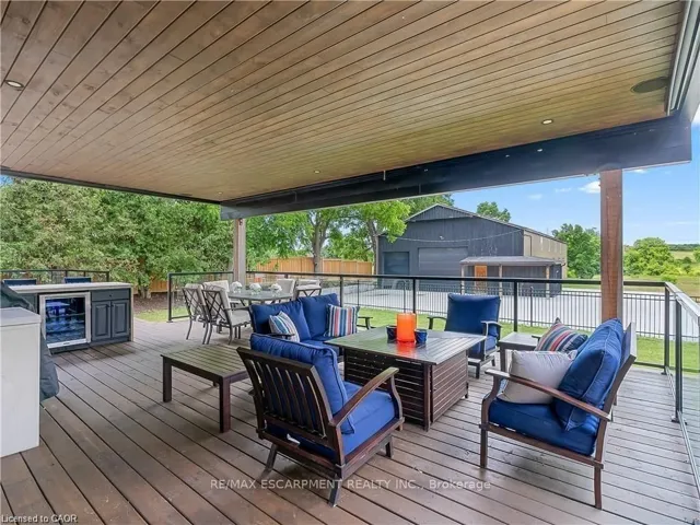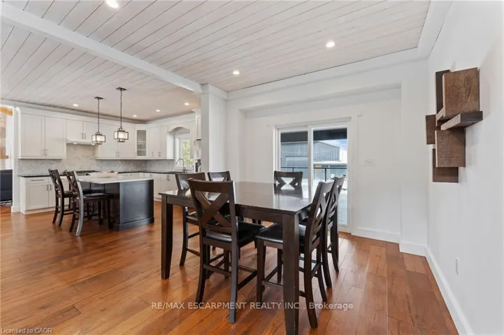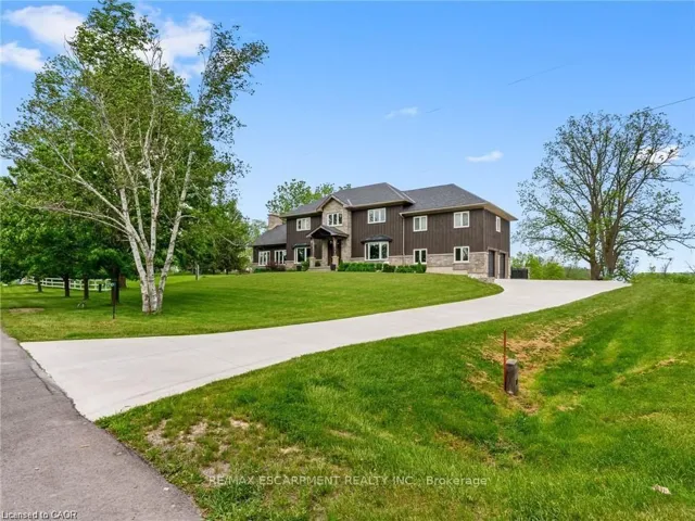 +"PublicRemarks": "This stunning 5-bedroom, 2.5-bathroom home spans over an energy efficient 3,800+sq/ft and is perfectly positioned to overlook the breathtaking Grand River. Nestled on a generous lot overlooking rolling fields at the back and river access just across the street, it's an ideal setting for those who love the outdoors. Adding to its appeal, a massive 100' x 40' detached shop provides endless possibilities for hobbies, storage, or business use (w/ high speed fibre internet). The main floor boasts a spacious and inviting layout with 9ft ceilings, featuring a custom kitchen with a wood-paneled ceiling, stone countertops, a stylish herringbone backsplash, and a large island-perfect for gathering with family and friends. The adjacent dining room, with its tray ceiling and wood accent wall, offers picturesque views of the Grand River. The oversized great room is a true showstopper, complete with a floor-to-ceiling stone fireplace, vaulted ceiling, and expansive windows that frame stunning views in every direction. Step through one of two patio doors to your private outdoor oasis, featuring a large covered patio and built-in outdoor kitchen, ideal for entertaining. On one elevated side of the home, the primary suite offers a peaceful escape with a walk-in closet and a luxurious ensuite, complete with a custom tile shower. The second level hosts four additional bedrooms and a full 4-piece bathroom. The versatile basement offers even more potential, with its own private entrance from the attached double garage, making it an excellent option for an in-law suite or additional living space. For those needing extra room for vehicles, equipment, or recreational toys, this property delivers! The huge concrete parking area and driveway ensure ample outdoor storage/parking for vehicles/trailers. Don't miss this rare opportunity to own a spectacular home in a prime location with endless possibilities! Luxury Certified"