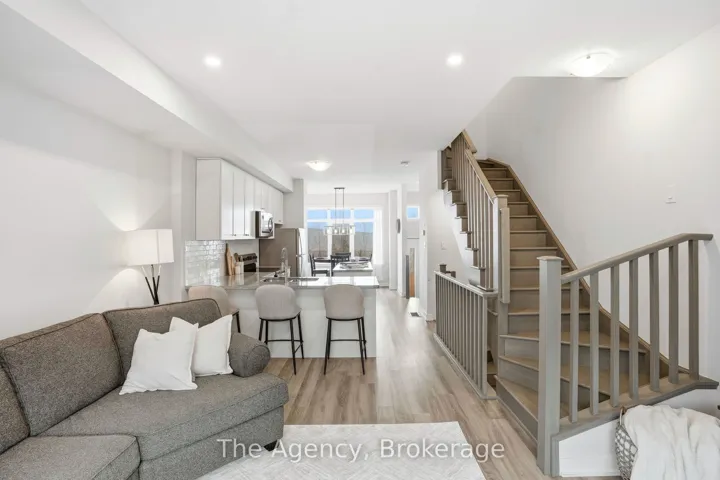 +"PublicRemarks": "Incredible home in an incredible location! This large END UNIT 3 bedroom, 2.5 bath townhome is sure to impress complete with room for up to 3 PARKING! Upon entering you're greeted with the massive open concept main living level filled with natural light from east and west facing windows (approx direction). The generous living room and dining room space allow for any furniture choices you wish. A contemporary kitchen complete with plenty of storage, quartz counters, stunning backsplash tile, SS appliances and massive island with seating on 2 sides (plus storage front & back!) is the hub of this home. You'll enjoy relaxing or entertaining in this fantastic space with it's views over treed property with the nearby pond in the distance. Off the kitchen is a very large back deck perfect for your quiet morning coffees or evenings entertaining family and friends. Finishing off this level is a lovely 2 pce bath. Upstairs are 3 right sized bedrooms plus desirable bedroom level laundry (complete with floor drain). The primary bedroom is truly a retreat with its own private balcony, generous walk-in closet and upgraded ensuite with glass + tile shower. An unexpected surprise here is the oversized attached garage...tons of room for storage while still fitting your vehicle! The single wide driveway can hold up to two cars long. Upgraded flooring on main and second floors 2023 & new hot water heater 2026. Tasteful neutral decor throughout & the added natural light from additional windows being an end unit are icing on the cake. This East End of Guelph area is ideal for families, couples or individuals alike with great schools close by, library, tons of trails/ponds for nature enthusiasts, Eastview Park with splashpad, disc golf and soccer fields, directly on public transit line and commuter close to main routes! This home must be seen to be appreciated, book your showing today!"