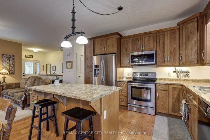 +"PublicRemarks": "Welcome to this inviting bungalow in the heart of Vienna, set on a quiet side street with lovely views from the back deck. Enjoy evenings in the screened in porch and screened in pergola. Inside, the open concept design makes everyday living easy, with a cozy fireplace in the living room and a kitchen island perfect for gathering. The east facing patio door and table is the perfect spot to watch the sunrise year round. Three main-floor bedrooms and the primary has a private ensuite. Downstairs you'll find a finished den plus a large workshop with its own 2-pc bath - ideal for hobbies or storage. The fenced yard, landscaped and lighted grounds, attached garage, and ample parking complete the package. The village has water, sewer, natural gas, cable TV, excellent cell phone service, and fast internet."