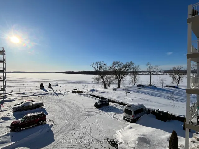 +"PublicRemarks": "This bright and spacious corner unit with 1,165 sq ft of living space and a wrap-around balcony is positioned along the scenic banks of the Ottawa River. The apartment's position on the 2nd level of the building gives it direct waterfront views, incredible daylight, & beautiful sunsets over the water. Its living room is anchored by a gas fireplace, has access through two sliding glass doors to the river-facing balcony, & features hardwood flooring, which runs through the living areas, creating a warm, cohesive atmosphere. The well-appointed kitchen features white cabinetry, quartz countertops, stainless steel appliances, ample counter space & storage, & direct access to a corner pantry. A laundry room/powder room is found by the front entrance to the unit. The primary bedroom features a large walk-in closet, while the second bedroom includes a custom-built-in wall unit with a Murphy bed, shelving, & a dedicated desk area, making it ideal as both a guest room & a home office. The spacious main bathroom offers a luxurious soaking tub, a separate glass-enclosed shower, & additional cabinetry. This unit includes an underground parking space & a larger-than-average storage locker, also plenty of outdoor parking is available. The complex has a car wash in the garage, a workshop, a party room, an exercise room, & a scenic outdoor BBQ area with a dedicated kitchen & fridge, located just steps from the river. From the grounds, you can access the marina, Du Moulin Park, walking paths, & plenty of green space, making it ideal for those seeking a calm, quiet home. The town of Rockland has a small-town atmosphere while still being close to everyday amenities, restaurants, grocery stores, shops, & essential services along Laurier Street, as well as a library, YMCA, indoor pool, fitness facilities, & community programming. Quick access to Highway 17 makes commuting into Ottawa simple and efficient, all while living in a picturesque setting."