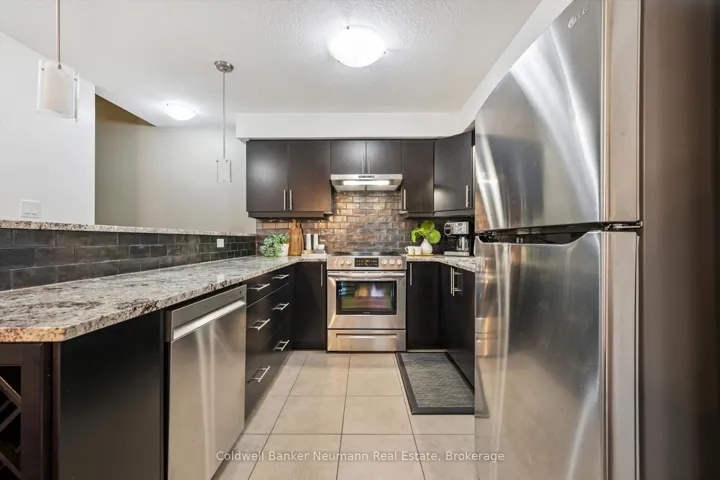 +"PublicRemarks": "This immaculate 1,310 sq ft townhouse offers a bright, open concept layout and is located within a well maintained, beautifully landscaped complex in Guelph's desirable south end. Enjoy the ease of low maintenance living so you can spend more time in the surrounding trails, parks and amenities. Filled with natural light from large windows, the main level features Maple hardwood and ceramic flooring, a spacious living and dining area, and a walkout to a private patio that includes a gas line for your BBQ. The kitchen is stunning with granite counters, ceramic backsplash, NEW APPLIANCES & lots of countertop space. With 2 bedrooms, a 5 pcs bathroom and a DEN (ideal for a home office), this property is well-suited for families, professionals or investors. The finished basement adds valuable living space and can easily function as a third bedroom or in-law/guest suite, complete with a Murphy bed, cozy gas fireplace, 4 pcs bathroom with heated floors and ample storage. Perfect for extended family living or rental flexibility. Included are 2 PARKING SPOTS, a rare and valuable feature, with potential to rent or provide added flexibility for multi-vehicle households. Additional highlights include central air conditioning, an HRV, sump pump, a covered front porch, plenty of storage throughout and a 2 pcs bathroom on the main level. The furnace and A/C were replaced in 2020 and a new water softener installed in 2023. Located just steps to trails, parks, and top rated schools and within walking distance to grocery stores, restaurants, and entertainment, this home is ideal for families. For investors, the strong location, functional layout, and basement flexibility make it an attractive, low maintenance rental option in a high demand area. Quick access to the 401, Hwy 6 and nearby GO transit makes commuting simple. An excellent opportunity for a wonderful family home or a smart, versatile investment property in a highly convenient, well connected neighbourhood."