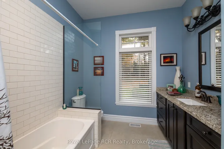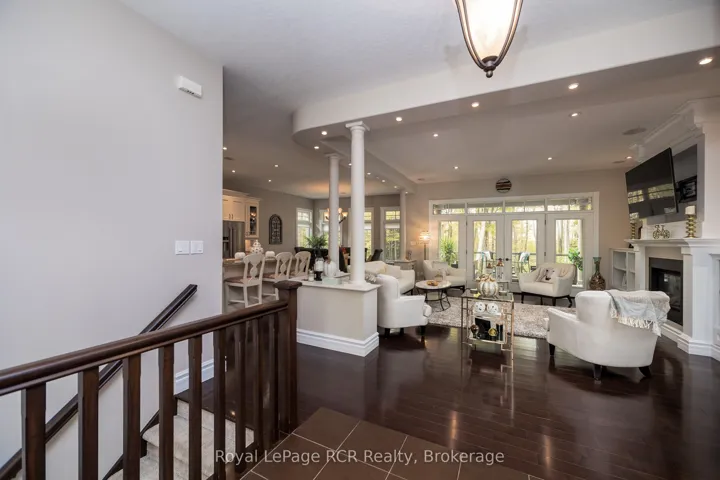 +"PublicRemarks": "Luxury meets country in this one of a kind brick bungalow situated on just under 2 acres. With over 4000 sq ft of living space, this home has a lot to offer! The open concept main floor includes the living room with a propane fireplace, built in shelving and a double door walk out to the covered porch. There is an ample sized kitchen and dining area with nice finishes, plenty of cupboard space and a walk out to the covered deck. The master bedroom has nice views from the windows, an electric fireplace for those cozy nights, a walk out to the covered porch. Spacious 5pc ensuite and large walk in closet to finish it off. One more bedroom, a den, 4pc bathroom, powder room and mudroom with laundry complete the main floor. The lower level has potential to be converted into an in-law suite and features a recently upgraded chef's kitchen with top of the line built-in Thermador appliances, custom cabinetry and a spacious island. There are two full bathrooms, one 3pc including a soaker tub and matching vanity and make up station, and the other 3pc with a large custom made walk in shower and vanity. The two bedrooms feature custom closet organizers and cabinetry. Along with a pantry and an office, the lower level also features a living room with a propane fireplace and walk out to the covered patio complete with a hot tub! The home has a 2 car attached garage on the main level and a bonus underground garage space utilized as a gym. The lot is nicely landscaped and with an efficient geothermal heating and cooling system, there's nothing left to do but move in!"