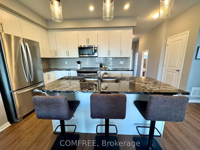 +"PublicRemarks": "Welcome to this beautifully maintained end-unit townhome built in 2020, located in a quiet, family-friendly neighbourhood just minutes from parks, trails, schools, and everyday shopping. The bright open-concept main floor is filled with natural light and offers a seamless flow between the kitchen, dining, and living areas-perfect for entertaining or relaxing with family. The kitchen features granite countertops and upgraded stainless steel appliances, combining style and functionality. Upstairs, you'll find three spacious bedrooms, including a generous primary suite with a walk-in closet and private ensuite bathroom. A versatile loft space provides the perfect setup for a home office, study area, or second living room. The second-floor laundry adds everyday convenience. This home offers 2.5 bathrooms, with plumbing roughed in in the basement. The partially finished basement provides flexible space ideal for a home gym, recreation room, or additional family area, along with ample storage. Outside, enjoy a fully fenced backyard with a deck overlooking a community trail with no rear neighbours, offering both privacy and a peaceful setting. Additional highlights include a single attached garage and extended driveway parking for up to six vehicles. A perfect blend of comfort, functionality, and location."
