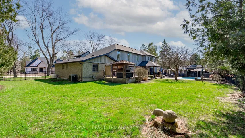 +"PublicRemarks": "Welcome to this exceptional luxury estate in the highly sought-after community of Kilworth. Offering an impressive 3,297 square feet above grade, this beautifully updated home blends timeless elegance with modern comfort, delivering incredible value for discerning buyers. Set on a spacious 0.46-acre corner lot, it offers abundant privacy and peace, exactly what is needed to come home to after a hectic day. Featuring 3+1 spacious bedrooms and 2+2 well-appointed bathrooms, this home is thoughtfully designed for both everyday living and entertaining. The interior has been meticulously updated throughout since 2019, showcasing high-end finishes, refined details, and a seamless flow from room to room. With the addition of a second storey, the large, updated windows throughout are breathtaking, along with a new furnace, central air, shingles, an electrical panel, and new flooring throughout, on top of the beautiful kitchen and bathroom renovations. The basement features an office space, games room and bar area that is perfect for entertaining. Additionally, the basement has a bathroom rough-in and the main floor laundry room also has a shower rough-in. Ideally located, this property offers convenient access to parks, scenic walking trails, and a full range of nearby amenities. Step outside to your private backyard retreat, complete with a sparkling pool, relaxing hot tub, and an impressive pool house with a bar, perfect for hosting unforgettable summer gatherings. Surrounded by lush greenery and offering ample outdoor space, this property provides the perfect balance of luxury and tranquility. This is a rare opportunity to own a turn-key estate in one of the area's most desirable locations, where style, space, and lifestyle come together effortlessly."