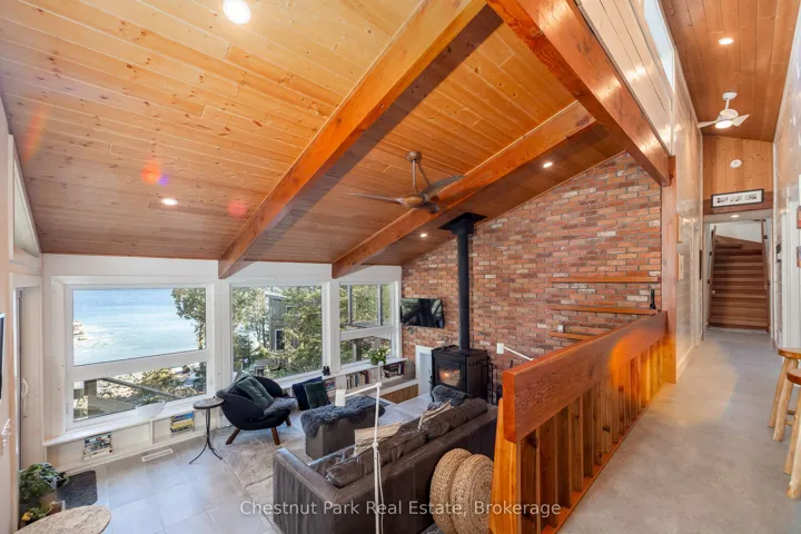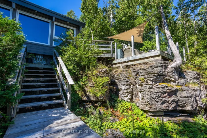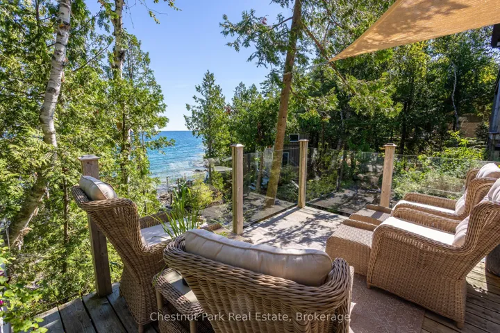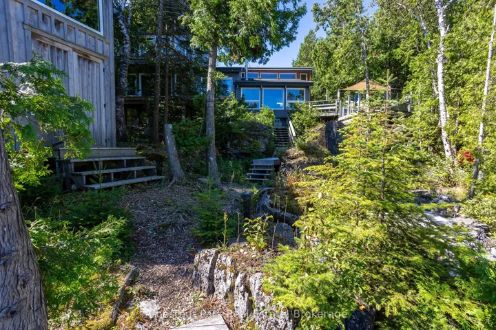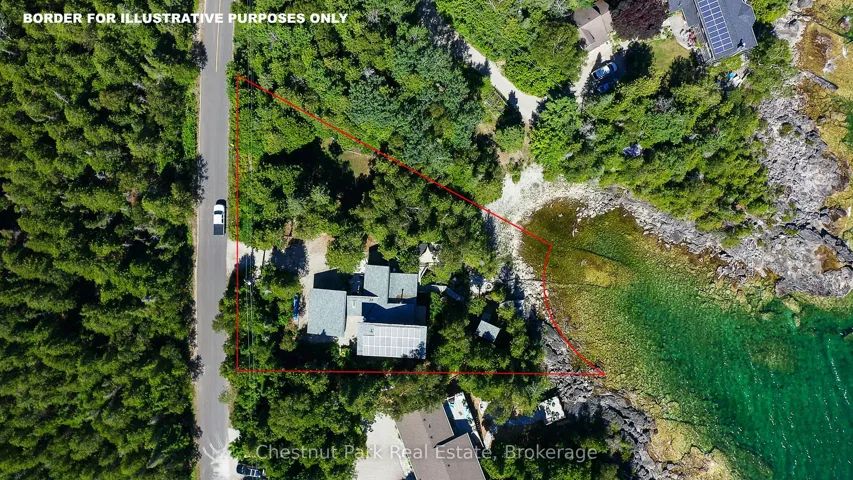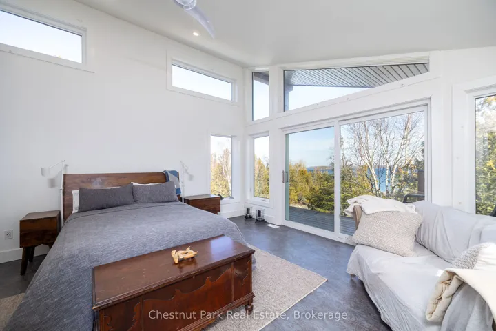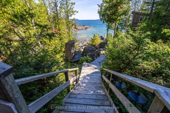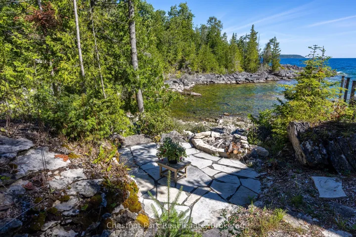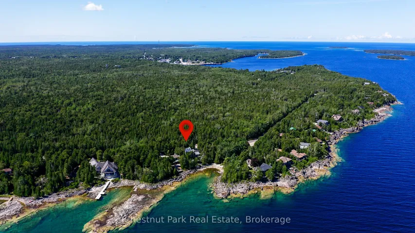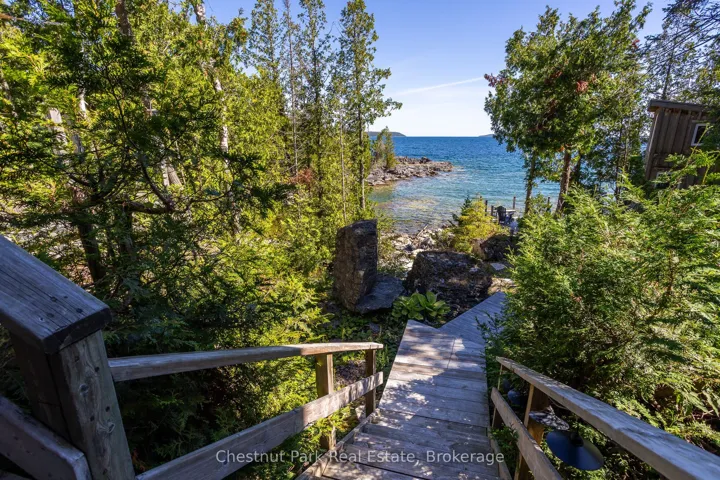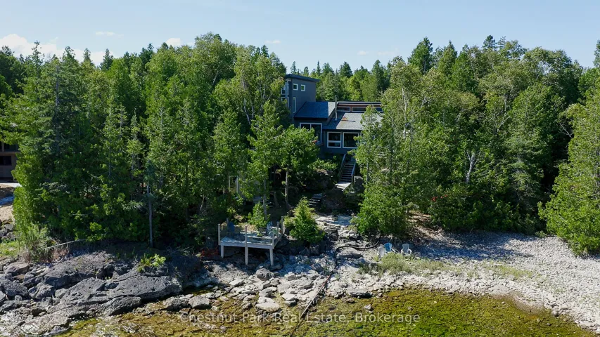 +"PublicRemarks": "Welcome to your private Georgian Bay retreat in the heart of Tobermory-where contemporary design meets comfort and breathtaking natural beauty. Set on a rare protected cove with inspiring views toward Flowerpot and Bear's Rump Island, this extensively renovated waterfront home offers exceptional privacy just a short walk to the village, shops, and restaurants. Reimagined in 2019 with a complete down-to-the-studs extensive renovation and thoughtful addition, this 3+1 bedroom, 2-bath home was designed for energy efficiency. A 7.6k W solar system with net metering, Solar Edge inverter, and Level 2 EV charger pairs with a Zuba air-source heat pump for near net-zero living. Inside, warm modern finishes include ready-pine ceilings, custom Douglas fir stairs, and expansive windows framing the water. Durable concrete-effect flooring runs throughout, complemented by Italian porcelain tile and in-floor heat in the primary bath. A Blaze King Chinook wood stove adds efficiency and ambiance. All major systems were also updated in 2019, including plumbing, electrical, septic, windows, roofing (addition), and a 3-stage water purification system. Additional features include a custom office with built-ins, automatic closet lighting, and a heated, insulated crawl space. Outdoors, enjoy all-cedar decks, luxury hot tub, a waterfront platform, and beautifully landscaped stone patios (2023) with firepit and raised garden beds. The large single-car garage includes a garden prep/sink area. A charming two-level cedar bunkie at the water's edge (2017) provides extra guest space ( up to 4 people) and stunning views over Georgian Bay. Surrounded by nature trails and hiking, yet close to the harbour village, this property offers the perfect balance of privacy, efficiency, and waterfront living."