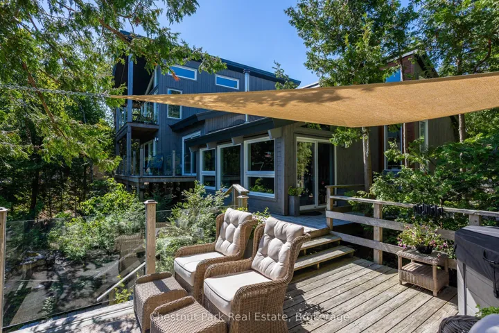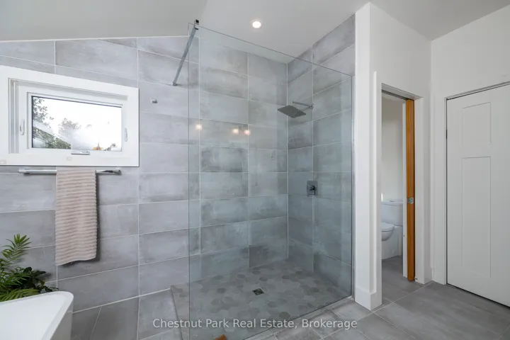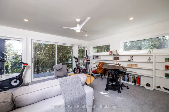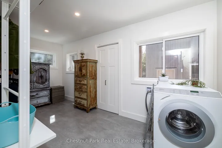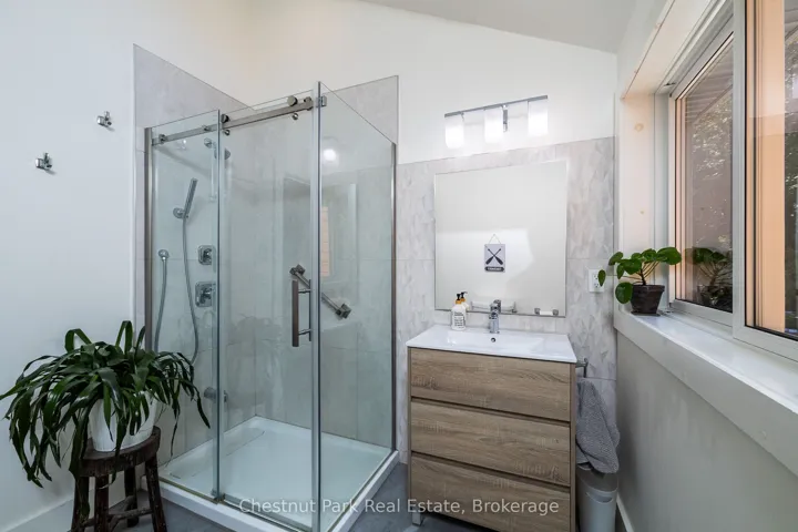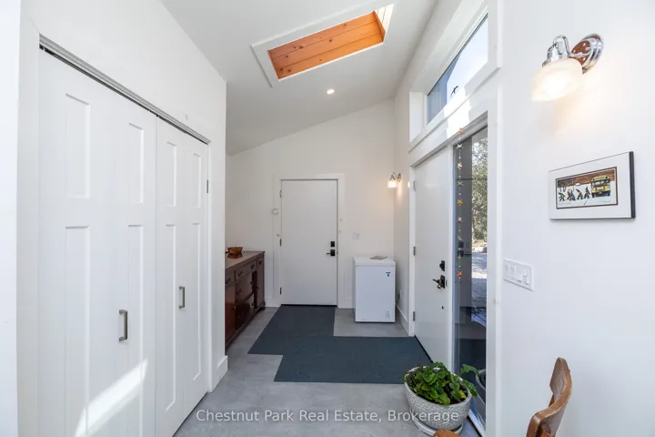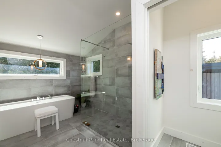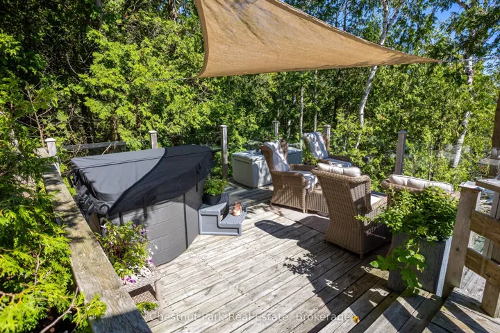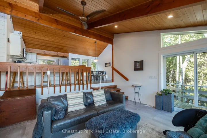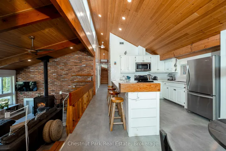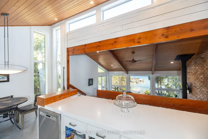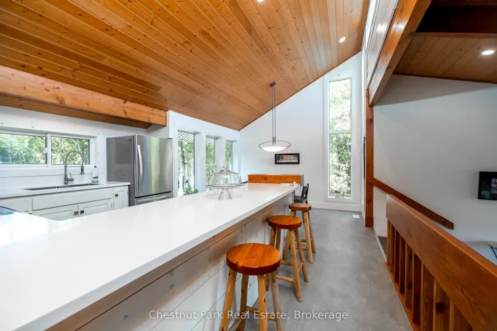+"PublicRemarks": "Welcome to your private Georgian Bay retreat in the heart of Tobermory-where contemporary design meets comfort and breathtaking natural beauty. Set on a rare protected cove with inspiring views toward Flowerpot and Bear's Rump Island, this extensively renovated waterfront home offers exceptional privacy just a short walk to the village, shops, and restaurants. Reimagined in 2019 with a complete down-to-the-studs extensive renovation and thoughtful addition, this 3+1 bedroom, 2-bath home was designed for energy efficiency. A 7.6k W solar system with net metering, Solar Edge inverter, and Level 2 EV charger pairs with a Zuba air-source heat pump for near net-zero living. Inside, warm modern finishes include ready-pine ceilings, custom Douglas fir stairs, and expansive windows framing the water. Durable concrete-effect flooring runs throughout, complemented by Italian porcelain tile and in-floor heat in the primary bath. A Blaze King Chinook wood stove adds efficiency and ambiance. All major systems were also updated in 2019, including plumbing, electrical, septic, windows, roofing (addition), and a 3-stage water purification system. Additional features include a custom office with built-ins, automatic closet lighting, and a heated, insulated crawl space. Outdoors, enjoy all-cedar decks, luxury hot tub, a waterfront platform, and beautifully landscaped stone patios (2023) with firepit and raised garden beds. The large single-car garage includes a garden prep/sink area. A charming two-level cedar bunkie at the water's edge (2017) provides extra guest space ( up to 4 people) and stunning views over Georgian Bay. Surrounded by nature trails and hiking, yet close to the harbour village, this property offers the perfect balance of privacy, efficiency, and waterfront living."