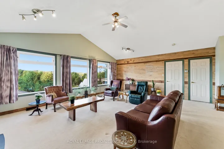 +"PublicRemarks": "Set on 8.3 acres of wooded countryside just north of Brighton and minutes from Highway 401, this custom-built home offers a terrific balance of privacy, natural beauty, and everyday convenience. Tucked among mature trees, the property provides a peaceful, secluded setting while remaining within easy reach of nearby amenities and commuter routes. The main living area is highlighted by a cathedral ceiling and expansive windows that capture sweeping views of the landscape. The kitchen is both functional and spacious, offering ample cabinetry and workspace suited to daily living or entertaining. The primary bedroom serves as a comfortable retreat, featuring locally sourced black cherry hardwood flooring, a walk-in closet, and an ensuite with in-floor heating. A walkout leads to a cedar deck overlooking the surrounding trees. The lower level extends the living space with a cozy recreation room anchored by a wood stove, two very large additional bedrooms (including one with its own ensuite), a cold room for food storage, and a walkout to the backyard and wood shed. A standout feature of the property is the impressive 40' x 60' outbuilding. Designed with versatility in mind, it includes a heated and insulated workshop, a two-car garage area suited for large vehicles or equipment, and additional upper-level space. With 60-amp service and solid construction, it is well suited for hobbyists, tradespeople, or those needing substantial storage. Heating is provided by a combination boiler and radiant systems. Key updates include oil tank (2019), roof with architectural shingles (2022), cedar deck (2024), and air conditioning (2025). Further enhancing the property is a transferable Micro FIT contract with Ontario Hydro generates approximately $10,000 annually for the next four years-an added income stream that contributes meaningful value, in addition to generating your own electricity and offsetting your hydro bill. A well-built home in a quiet and natural setting!"