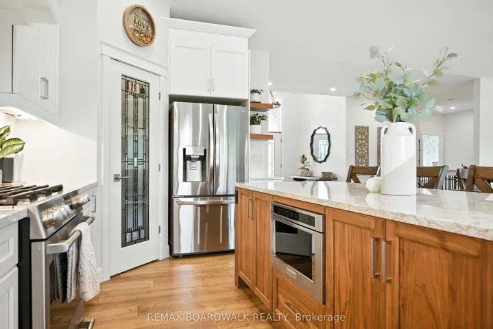 +"PublicRemarks": "Experience the perfect fusion of 1899 character and modern design in this solid-brick Victorian located in the sought-after Blakeley neighborhood. Fully modernized for ultimate peace of mind, this home boasts newer windows, a 200-amp electrical panel and all-new electrical and plumbing completed in 2024. The interior opens with a striking checkered foyer leading into a sophisticated main floor, anchored by a living room featuring a sleek marble-patterned fireplace surround and elegant matte-black cabinetry. The heart of the home is the chef's kitchen, showcasing premium white appliances, a Black center island with quartz counters and custom cabinetry with stylish rattan inserts. This space flows seamlessly into a dedicated coffee bar and a sun-drenched dining area with sliding door access to the rear deck. Upstairs, the primary retreat offers a boutique atmosphere with custom wall paneling and gold sconce lighting. The spa-inspired bathroom is a true showstopper, featuring a freestanding soaking tub, a massive black-framed glass shower and a double vanity set against a marble-veined feature wall. The outdoor oasis is designed for entertaining, featuring a multi-tier deck that leads to a private hot tub under a modern black pergola, all framed by custom planters and designer privacy fencing. This move-in-ready masterpiece offers a luxury lifestyle and mechanical reliability just steps from Gage Park and Hamilton's best local amenities."