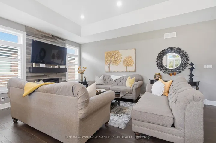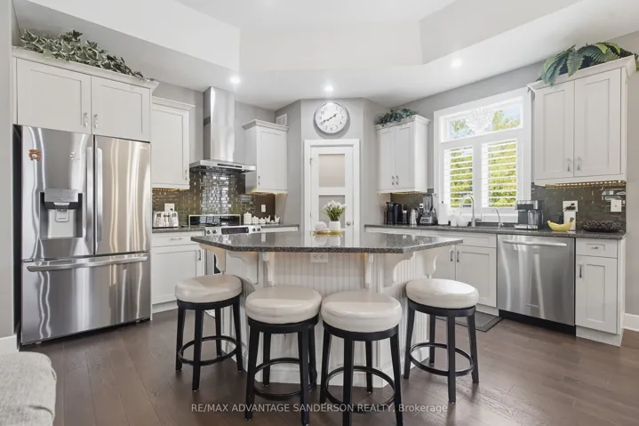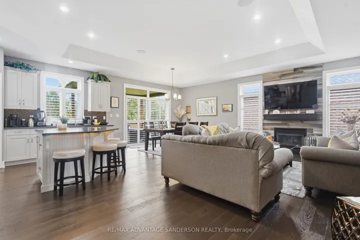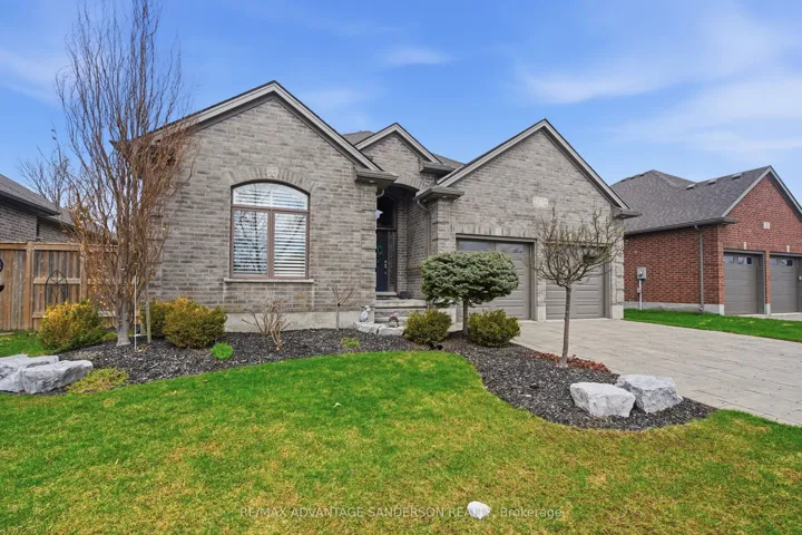 +"PublicRemarks": "Gorgeous executive brick ranch in Timberwalk Estates in Ilderton with gorgeous backyard & perennial garden. 1800 sf Colden Homes built. Double attached garage with paver stone driveway and walkway. Professional landscaping and fully fenced yard. Irrigation system. Covered rear deck/porch with gas bbq hook-up. Stunning open concept interior with gourmet kitchen and quartz countertops. Handy breakfast island. Hardwood flooring throughout much of the main floor. Speaker system in great room and covered porch. Coffered ceiling in great room. 3 bedrooms and 2 bathrooms including gorgeous en-suite with oversize walk in shower. California shutters throughout. This home shows a 10! Bonus: most furniture is negotiable!"