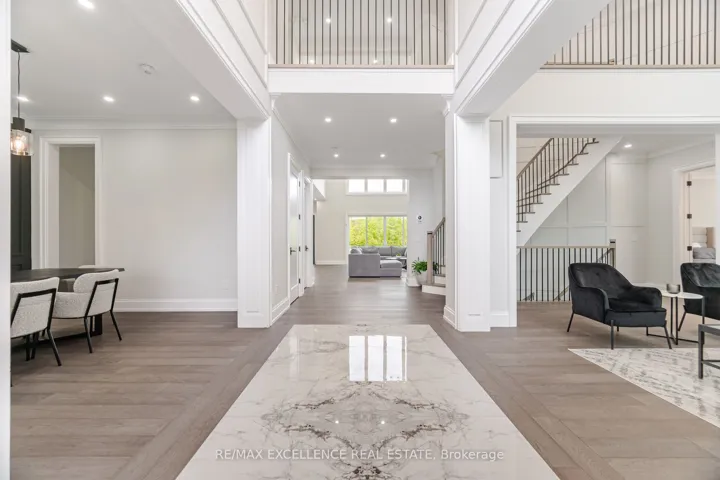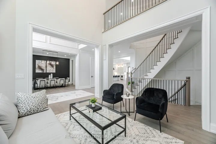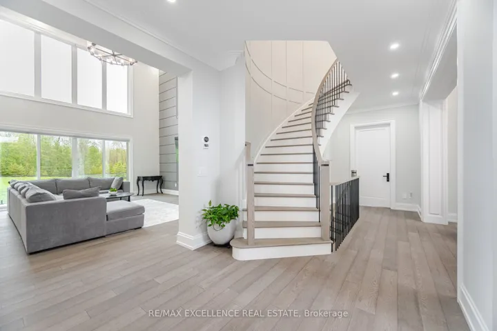 +"PublicRemarks": "Welcome To This Exquisite Custom-Built Luxury Estate, Nestled On A Private 2-Acre Setting. This Grand Residence Offers Nearly 7,700 Sq Ft Of Flawlessly Finished Living Space, Featuring 7 Spacious Bedrooms, 7.5 Spa-Inspired Bathrooms, And An Impressive Total Of 6 Garage Spaces With Parking For Over 20 Vehicles. Premium Stone And Brick Exterior, Beautifully Complemented By Outdoor Wall Lighting And Extensive Soffit Pot Lighting That Illuminate The Property With Elegance. The Grand Stamped Concrete Front Entrance Is Framed By A Professionally Designed Circular Flower Garden. Inside, The Home Showcases Exceptional Craftsmanship With 10 Ft Ceilings On The Main Level, 9 Ft Ceilings On The Upper And Lower Levels, Oversized 8 Ft Doors, Wide-Plank Engineered Hardwood Flooring, Custom Wainscoting, And An Abundance Of Pot Lighting. Motorized Blinds And A Retractable Central Vacuum System Add Modern Convenience. The Main Level Offers A Open-To-Above Foyer With Heated Book-Matched Porcelain Floors, A Guest Suite With Ensuite And Walk-In Closet, A Formal Dining Room With Custom Accent Wall, A Grand Living Space With Soaring 19 Ft Ceilings, And A Designer Kitchen Featuring Jenn-Air Appliances, A Waterfall Island, Pot Filler, And A Servery. A Fully Equipped Spice Kitchen Adds Additional Convenience For Entertaining. Upstairs, The Primary Suite Includes A Walk-Out Balcony, A Walk-In Wardrobe, And A Spa-Like Ensuite With A Waterfall Shower. All Bedrooms Feature Ensuite Bathrooms And Custom Walk-In Closets. The Open Hallway Is Sun-Filled And Airy, And The Upper Laundry Includes A Samsung Steamer. The Walk-Out Basement Includes A Theatre Room, A Spacious Recreation Room With Bar, Electric Fireplace, And Two Bedrooms. Premium Vinyl Flooring, Rough-In For Radiant Heating, And Ample Storage With Custom Cabinetry Complete This Level. A Rare Opportunity To Own A Truly Luxurious, Move-In Ready Home With Timeless Finishes And Exceptional Craftsmanship In A Peaceful Country Setting."