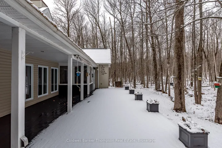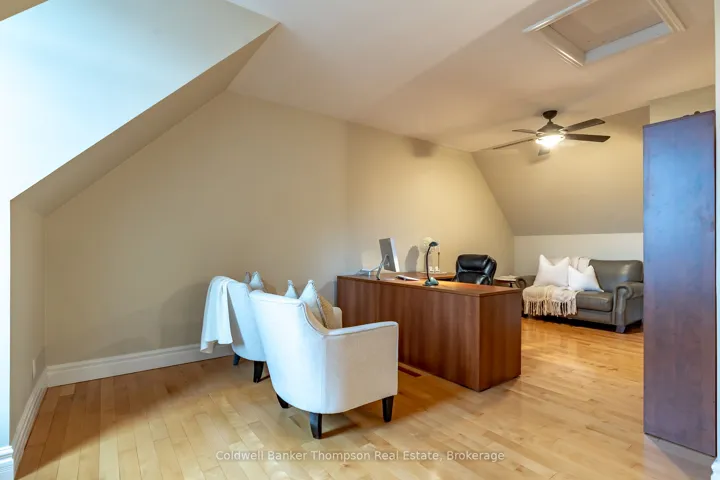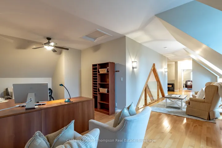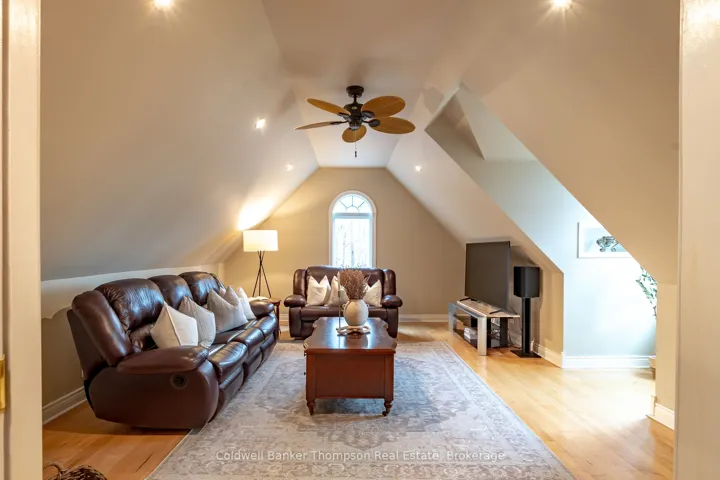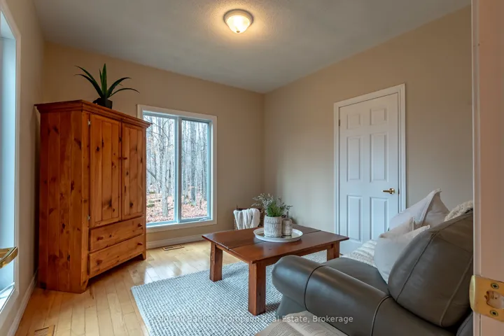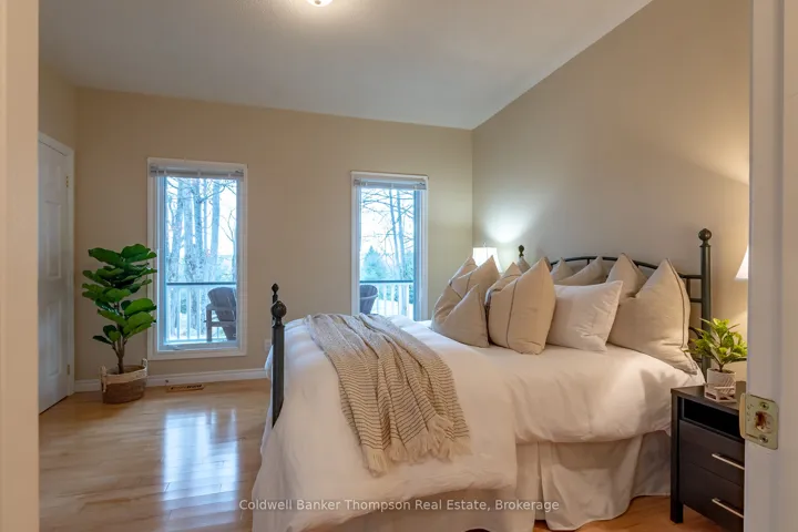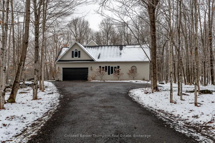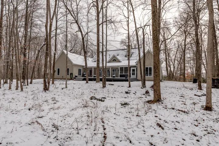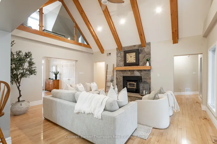 +"PublicRemarks": "At the end of a quiet cul-de-sac, a meandering driveway leads through the trees to a stately home, accented by a covered front porch & classic dormer windows. Inside the spacious foyer, the formal dining room sits to the right, while the living room opens ahead, featuring a stone-accented wood-burning fireplace & a vaulted ceiling with faux wood beams. The kitchen offers granite counters, a propane cooktop, a built-in raised oven & microwave, & ample cabinetry, perfect for everyday cooking & entertaining. From the living room, two separate hallways extend to the guest bedrooms, creating excellent privacy. One hallway leads to a guest suite with a walk-in closet & 4pc ensuite. The other hallway connects to a second bedroom with an adjacent 3pc bathroom & a nearby den, ideal for quiet work or reading. On the opposite side of the main floor, the large primary suite feels like its own retreat, complete with a walk-in closet, faux-beam-accented vaulted ceilings, & a 5pc ensuite featuring a jetted soaker tub, shower stall, water closet, & double-sink vanity. Upstairs, the family room, with its propane fireplace, offers a comfortable gathering space, complemented by a convenient 2pc powder room. Beyond this, a generous open area is currently arranged as two separate office spaces, perfect for work-from-home flexibility or creative pursuits. Bell Fibre is installed at the property, providing excellent connectivity. Outdoors, the property enjoys private, deeded access to Peninsula Lake, shared with only two neighbouring properties, via a private, cleared hiking trail. The trail leads to a hard-packed sand entry & a private dock, offering a simple, convenient spot to launch a canoe or kayak, or even to dock your boat. The northeast boundary of this property adjoins the protected Pen Lake Farms Nature Reserve, creating a peaceful natural buffer & enhancing the quiet surroundings. This home offers thoughtful design, privacy, & a rare opportunity for private waterfront access."