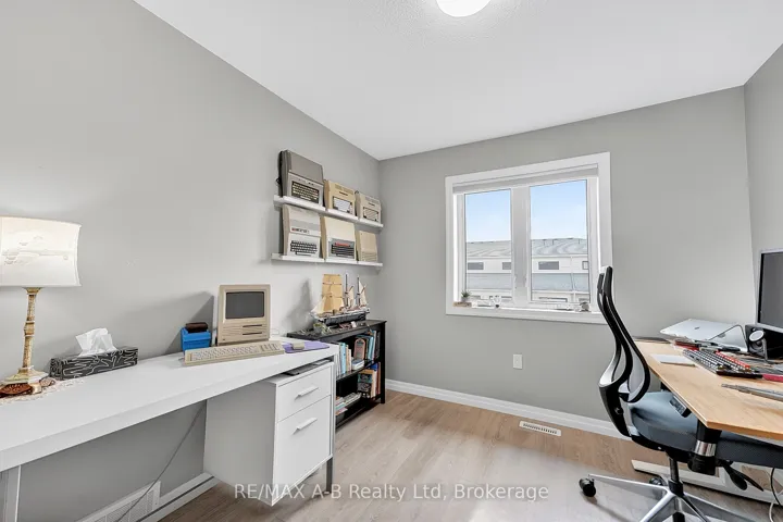 +"PublicRemarks": "Welcome to this practically new and move-in ready stylish end-townhome, built in 2023 and ideally located in a highly desirable neighbourhood backing onto a serene wooded sanctuary. Offering a premium location, this bright and spacious home is filled with natural light from its large windows on two sides of the home.The main floor offers functional design with inside access from the 19 foot garage, a versatile den with the potential to be converted into a bedroom, laundry room with ample storage space and A rare basement level offering 320 sq. ft. of versatile space, perfect for storage or a bright family room with two windows. The second level features a modern open-concept layout with wide plank hardwood flooring, smooth ceilings, and pot lights throughout the kitchen and living areas. The quality upgraded kitchen includes quartz countertops, modern colour cabinetry, soft-close drawers and cabinets, and a stylish backsplash, flowing seamlessly into a cozy dining area and bright living space. Step out onto the large private balcony and enjoy peaceful views of the surrounding greenery perfect for those bird watchers. Upstairs offers well-appointed bedrooms, including a spacious primary suite with a 3-piece ensuite featuring quartz countertops, high cabinetry, and a wall-in glass shower. A full 4-piece main bathroom and an additional 2-piece powder room add convenience. Custom Silhouette blinds and upgraded doors and hardware are found throughout.With quality finishes, a functional layout, a rare basement, and a premium corner location backing onto green space, cozy front porch facing the natural preserve, this home is an exceptional opportunity. This over 2000 square foot home is Perfect for First-Time Buyers and Downsizes."