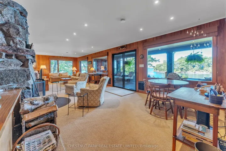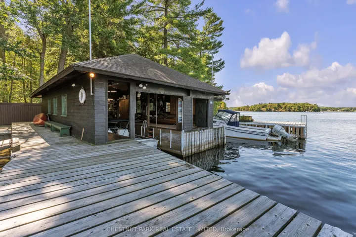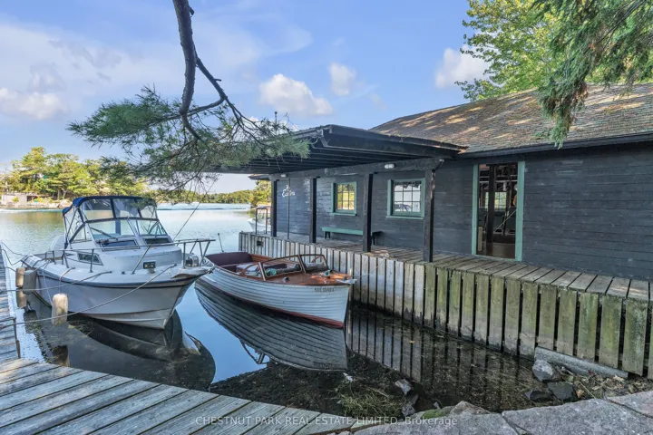 +"PublicRemarks": "36 Bostwick Island, The Thousand Islands: An 11-Acre Estate. Discover a rare 11-acre parcel on Bostwick Island, minutes from the Gananoque Marina in the heart of the Thousand Islands. This historic 6-bedroom, 4-bath summer home (circa 1909) has been lovingly maintained by a full-time caretaker and offers unmatched privacy, charm, and natural beauty. Stretching the full width of the island from north to south, the property showcases a scenic pond with a fountain, rugged gardens, and winding trails throughout. Relax on the sand beach, enjoy deep water swimming at the dock, or enjoy time in the hot tub and sauna. The marine facility is terrific; a wet slip boat house with shop/repair space, a second covered slip and extensive other docking. This Summer Home features a grand covered verandah, stone fireplace built from island-quarried stone, main-floor principal suite, a private office/den and an updated kitchen. Upstairs, you'll find 4 charming bedrooms and 2 bathrooms. Outdoor living shines with a hot tub for sunset views, sauna, and spectacular island vistas to the north west from the covered, huge verandah and over the 40 Acres to the south. First time on the market in many years, this is truly a jewel of the Thousand Islands, offering history, privacy, and timeless waterfront living."