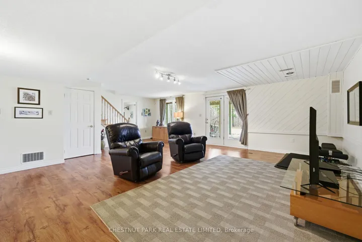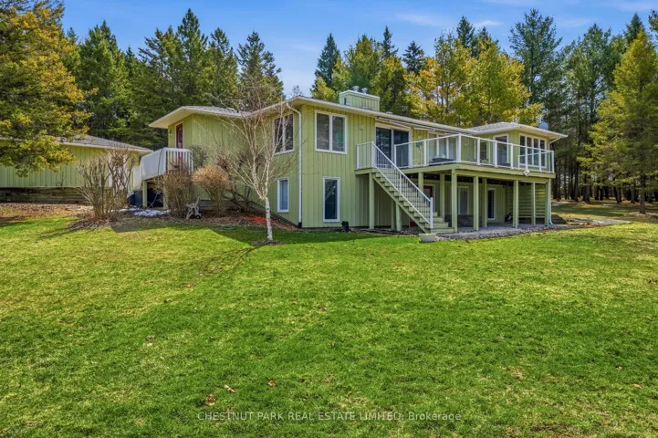 +"PublicRemarks": "A Waterfront Retreat in Prince Edward County. Set along 275 feet of pristine waterfront on 3.4 acres of private, gently treed landscape, this naturally inviting property unfolds with a quiet sense of arrival. A meandering drive leads through mature pines to a thoughtfully positioned bungalow with walkout, where open lawns meet the shoreline and sunset views become part of daily life. Seamless Indoor-Outdoor Living defines the experience here, with curated exterior spaces including a broad deck and stone patio extending toward a bonfire gathering area and the water's edge. The setting feels both refined and effortless, designed for long summer evenings and unhurried mornings alike. Inside, the home is defined by light, scale, and an intuitive connection to its surroundings. Principal rooms are generously proportioned, with expansive windows framing uninterrupted views across green space and water. A sunroom and walkout deck offer year-round vantage points, while the main floor primary suite with ensuite is privately set for comfort and ease. A den on this level provides a flexible retreat or studio. Space to Gather, Space to Unwind continues in the walkout lower level, where a spacious recreation area, two additional bedrooms, a three-piece bath, laundry with storage, and an optional bedroom, office, or hobby room create a thoughtful balance between hosting and quiet retreat. Complementing the residence, a detached dual-bay garage presents excellent opportunity for workshop use, recreational gear, or future refinement. Along the shoreline, the water is clean and inviting-ideal for swimming, boating, canoeing, or kayaking-while the setting attracts an ever-changing tapestry of birdlife. Step beyond to peaceful country roads for walking and cycling, with Picton, Waupoos, and Lake on the Mountain all within easy reach. Private. Peaceful. Distinctly County."