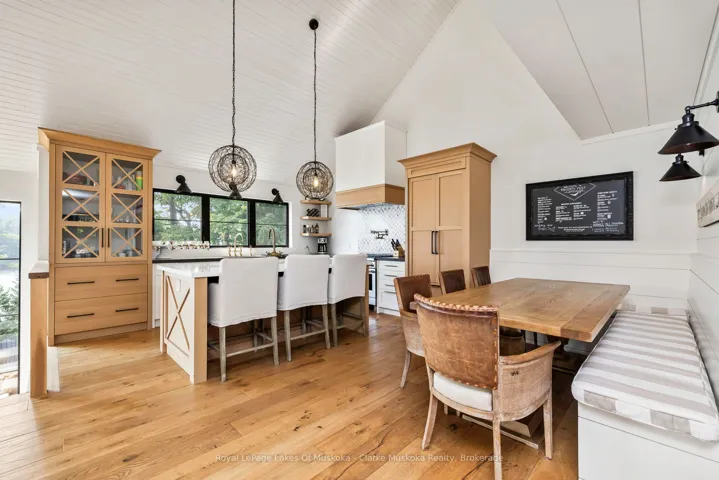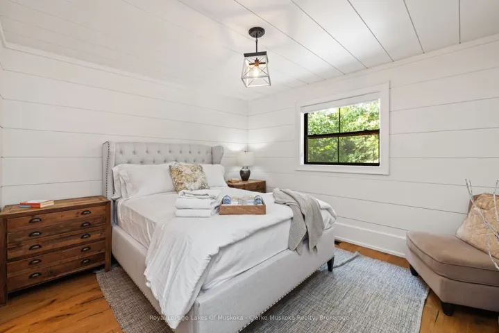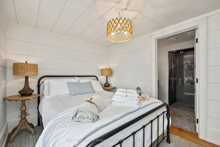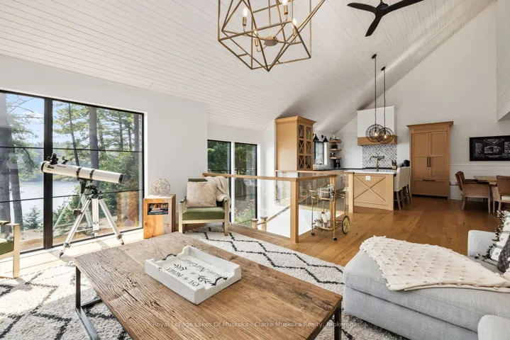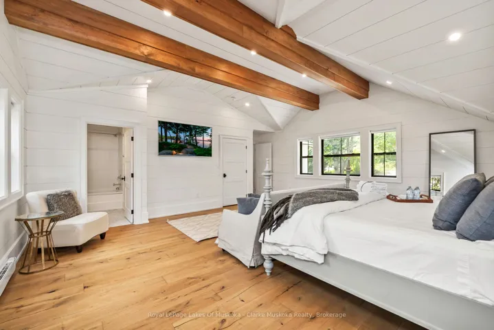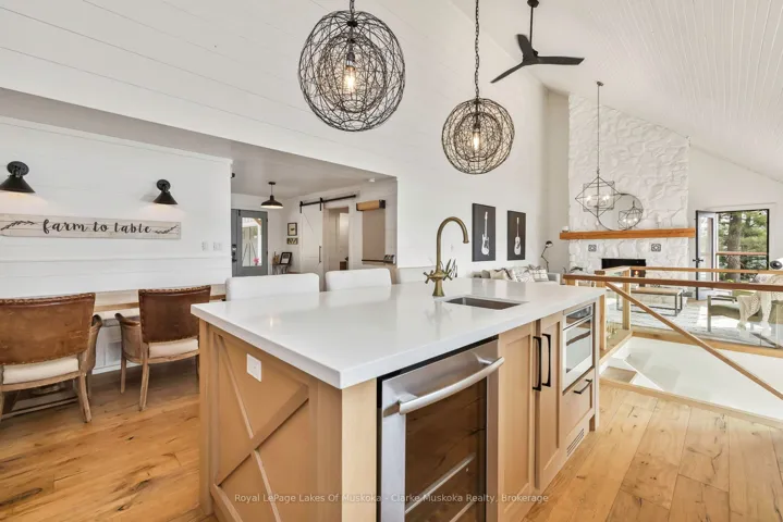 +"PublicRemarks": "This 3800+ sq ft, 1.5 storey Modern Farmhouse features 4 + 1 Bedrooms, a den, 6 baths, 3 separate living areas, a main floor master with walkout to a private deck, attached 2-car garage, and a large sunroom off the main floor living room. Enjoy both wood-burning and gas fireplaces, as well as a single-storey, two-slip boathouse with glass garage doors opening to a covered entertainment area. This successful rental property boasts spectacular attention to detail throughout, including custom millwork, a gorgeous kitchen featuring oak detailing, MDF shiplap walls, and a beautiful mix of oak hardwood and tile. Fully landscaped with various outdoor seating areas to take in long views down Lake Muskoka, the east-facing shoreline offers deep water off the dock perfect for swimming and boating."