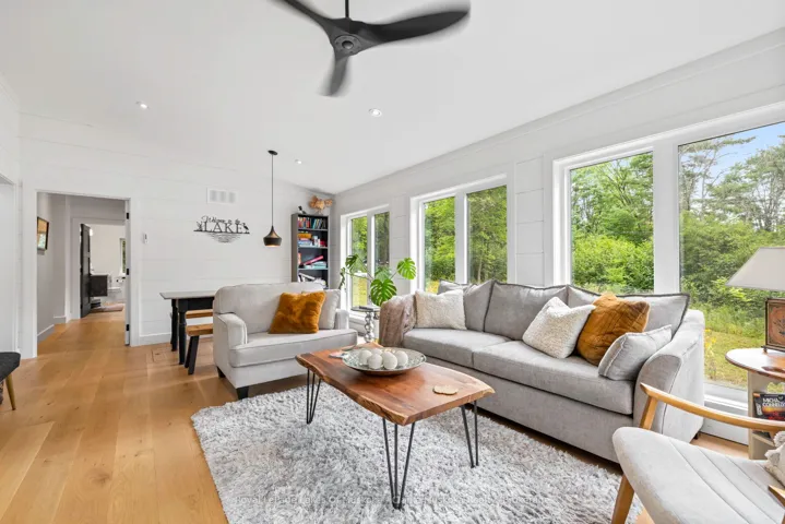 +"PublicRemarks": "Welcome to 56 Blair Pt Rd, a stunning four-bedroom, three-bath, four-season retreat nestled on the calm shores of Little Lake Joseph on a private, level lakeside lot. Offering 2,205 square feet of thoughtfully designed living space, this recently completed 2023 custom build blends modern luxuries with Muskoka charm. The heart of the home features an expansive open-concept living and custom kitchen area, highlighted by soaring ceilings and a striking floor-to-ceiling stone fireplace the perfect gathering space for family and friends. A sun-filled, four-season Muskoka room extends the living space, offering the ideal spot to enjoy morning coffee, sunrises and lake views. Large windows frame sweeping southwest vistas, filling the home with natural light and showcasing breathtaking evening skies over the water to create a warm, inviting atmosphere, fully equipped for year-round living or as a seasonal getaway. With four spacious bedrooms and three well-appointed bathrooms, this property provides ample space for a multi-generational family and guests. Heated concrete floors in the foyer and bathrooms add extra comfort, while many interior doors are designed at 36 wide to assist those who may be mobility challenged. Step outside and enjoy the rare convenience of a level lot, where you can drive right up to the back door, and only six gentle granite steps lead you down to the shoreline. A large covered deck spans the back of the cottage for social gatherings with lakeside views. The landscaped grounds are complemented by a private sauna with lake views, a hot tub, gas fireplace on the deck, and a Toja lakeside hammock perfect for unwinding. A spacious shed adds functionality and storage. A short drive to Rosseau and Port Carling, a backup generator and Bell fibre internet make this a seamless four-season getaway. Complete with all furniture, the home is move-in ready."