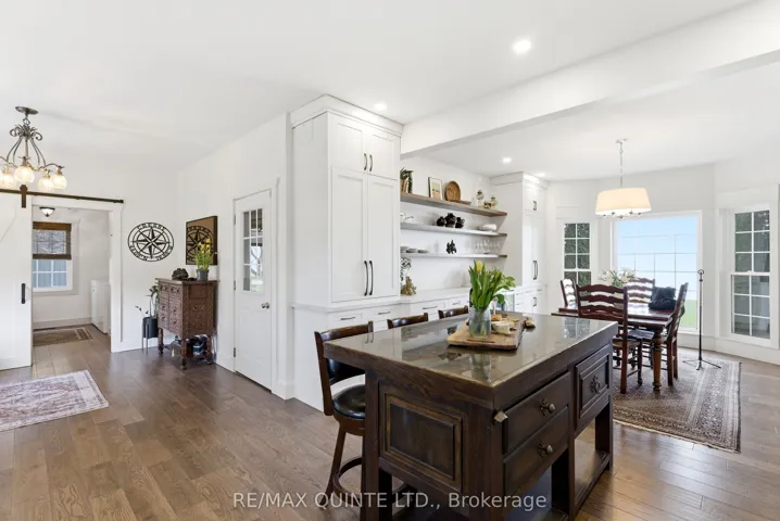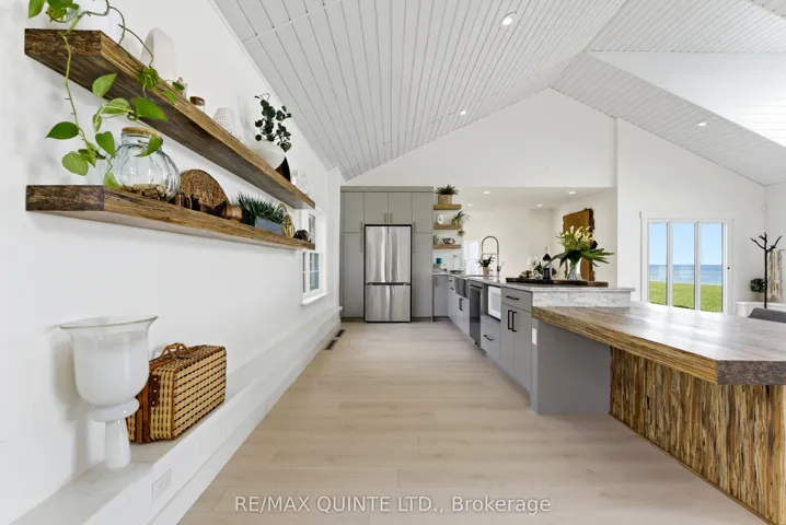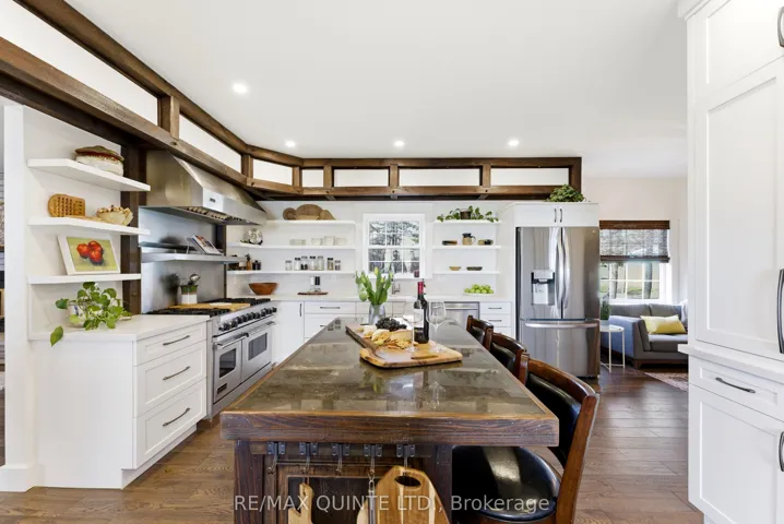 +"PublicRemarks": "Welcome to 4698 County Road 8. This stunning Cressy waterfront estate spans over 600 ft. of Lake Ontario shoreline. Envision gathering with family and friends on more than 8 private acres surrounding an elegant Cape Cod-style residence in beautiful Prince Edward County. Perfectly positioned for unobstructed south-facing views of Lake Ontario, wander down to a pebble beach and hardscaped shore leading into pristine, wildlife-rich waters. The home has been tastefully renovated, offering over 6,000 sq.ft. of versatile living space designed for both entertaining and everyday living. Inside, a beautifully appointed gourmet kitchen with custom cabinetry, refined Dekton countertops and generous storage opens seamlessly into an inviting living room anchored by a cozy brick fireplace while a 3 season enclosed porch offers the perfect setting for al fresco dining. This level also features a private primary wing with walk-in closet and 4-piece ensuite. The upper level offers two additional bedrooms, two full bathrooms, and a spacious multi-purpose room. The lower level includes a walk-out in-law suite complete with its own kitchen, living room, and full bathroom. A spectacular light-filled great room with soaring ceilings, recently renovated in 2025 showcases an oversized wet bar - ideal for hosting grand gatherings. Enjoy serene moments in the detached screened pavilion, listening to waves washing ashore and gazing at sweeping water views of the distant horizon. Multiple outbuildings offer an abris for the creative and past times of all. The property presents many opportunities for growth, including a traditional post-and-beam barn, a charming apple shed, and an oversized outbuilding currently used as an indoor pickleball court, both with 200 amp service. From peaceful sunrise coffees at the water's edge to crackling fireside evenings under the starry skies, this inspiring Prince Edward County waterfront property offers a truly breathtaking lifestyle."