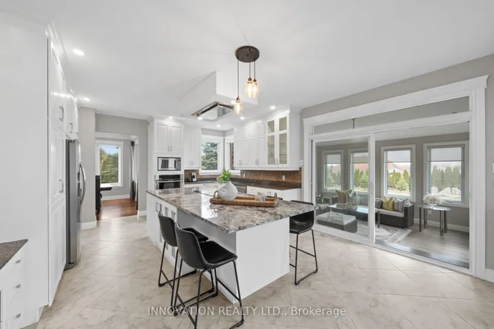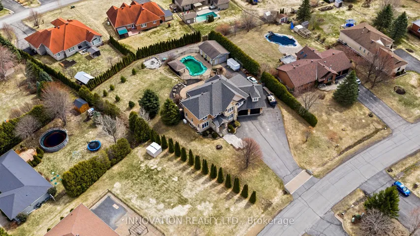 +"PublicRemarks": "Stunning custom home in sought-after Maple Forest Estates, North Gower, set on a prime oversized private lot just minutes to the highway & under 30 mins to downtown Ottawa. A Canterra design, nominated for the 2010 Ontario Masonry Design Award, showcasing exceptional curb appeal & quality finishes throughout. Freshly painted, this home features a renovated kitchen with granite counters, large island & added cabinetry, open-concept living & dining areas, sunroom, and a versatile main floor office/bedroom with access to a full bath. Spacious family room with custom built-ins. Upper level offers new hardwood flooring throughout and a luxurious primary suite with custom walk-in closet, spa-inspired ensuite with jacuzzi tub, glass shower & private balcony. Bonus room over garage ideal for bedroom, gym or flex space. Fully finished lower level with bedroom, renovated bath, rec room with projector & custom movie wall, and in-ceiling surround sound. Exceptional garage space includes a heated double attached garage with radiant floors, epoxy finish, furnace & workshop potential, plus a detached garage-perfect for storage, hobbies or additional workspace. Step outside to a private, fully hedged backyard oasis featuring a saltwater inground pool, custom cabana with TV, speakers & sink, firepit, irrigation system, interlock, cast iron fencing, lighting & gas BBQ hookup-perfect for entertaining and relaxing."