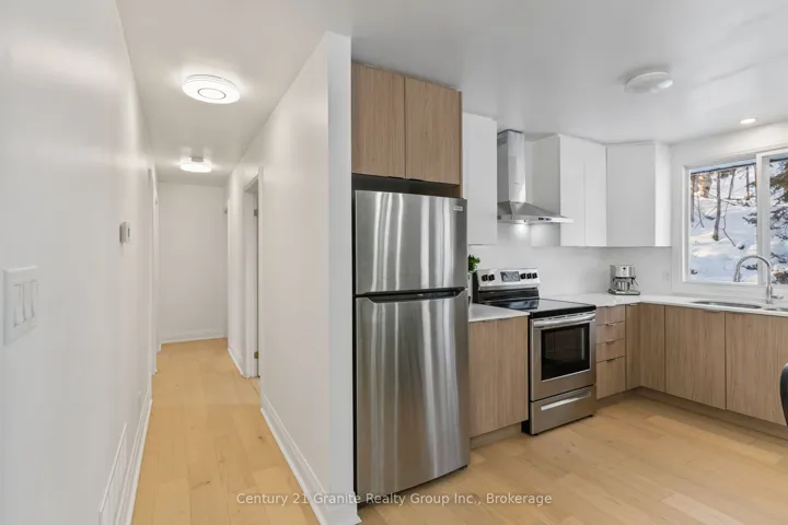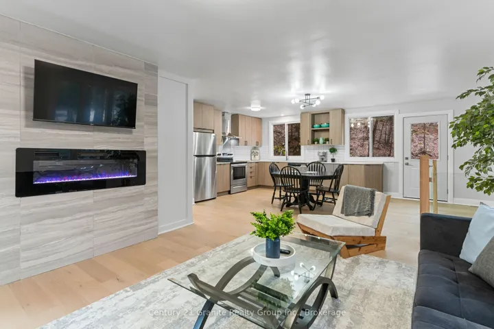 +"PublicRemarks": "This beautifully renovated 4 bedrooms plus den and 2 bathrooms raised bungalow offers over 2,200 sq. ft. of luxurious living space set on 1.5 acres of private, wooded land. With no visible neighbours, this home perfectly blends seclusion and tranquility, just minutes from the charming town of Minden, the Gull River, and several lakes, beaches, and restaurants. The upper level features an open-concept design with stunning oak-engineered hardwood flooring throughout. The spacious living area boasts large windows that flood the space with natural light, while the electric fireplace adds warmth and ambiance. Sliding doors lead to a covered porch, providing the ideal spot for relaxation as you overlook the serene stream and lush forest. This home offers three generous bedrooms on the main level, including a large primary suite with a 4-piece semi-ensuite bathroom and convenient main floor laundry. The lower level features an additional bedroom, a 3-piece bathroom, and a den-perfect for guests or a home office. The modern, sleek design includes waterproof vinyl flooring throughout the lower level, and the home is equipped with a UV & sediment water filter, ensuring clean and safe water throughout. Enjoy year-round comfort with a newly installed propane furnace and central air (2022). Outside, the backyard deck offers beautiful views of the surrounding forest, while the covered carport provides convenient protection for your vehicle. Modern vinyl siding and 2019 asphalt shingles complete the home's exterior, offering both curb appeal and durability. Located near ATV and snowmobile trails, this home is a nature lover's dream, yet still offers easy access to all the amenities of nearby towns. Whether you're looking for a peaceful year-round retreat or weekend getaway, this home has it all. Schedule your showing today and experience the perfect blend of comfort, privacy, and natural beauty."