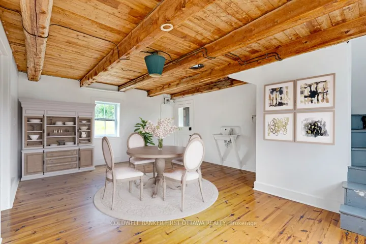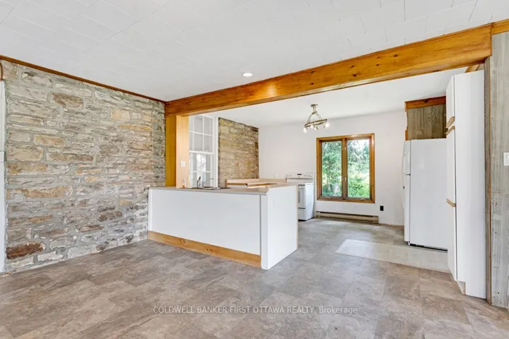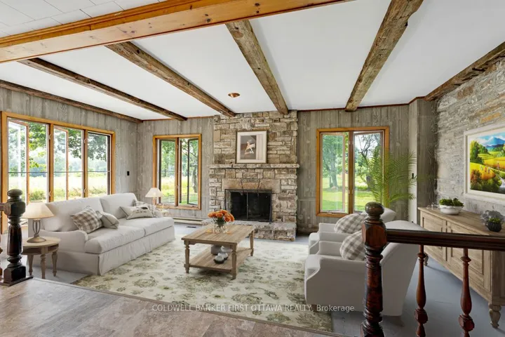 +"PublicRemarks": "Tucked along a quiet bend of the Tay River just ten minutes from Perth, this 73-acre estate is the kind of property that almost never comes up. An 1870s stone home, an 1820s log guest house, over 1,200 feet of natural swimmable shoreline, and total privacy at the end of a long private drive with no neighbours in sight. The stone home stands with quiet dignity, its original pine floors and historic millwork carrying the story of generations. Behind that character sits the practical stuff that matters: a brand-new septic system installed this year, propane furnace, updated wiring and plumbing, newer windows on the upper level, and added insulation. Generously sized rooms, a large wood-burning fireplace, and a clean, dry basement give the main house real bones. With 5 bedrooms and 1.5 baths, there's space for the whole family, even if you convert one of those bedrooms into a luxurious spa bathroom. The kitchen and dining room and the unfinished primary bedroom are blank canvases waiting for your vision. Outside is where this home really opens up. Forest and field roll out in every direction, dotted with apple trees and wild berry bushes. Launch a canoe from your own shoreline and paddle 2.5 km into Christie Lake. A boathouse sits right at the water ready for restoration. An 1825 barn with massive hand-hewn beams waits to be reborn, and the rustic log cabin with a screened porch and charmingly wonky floors makes a perfect guest house, summer retreat, or short-term rental opportunity. Just over an hour from Ottawa with easy access to Highway 7. Vibrant in summer, hushed under winter snow. A private world where time slows and history breathes in every stone, beam, and ripple of the river. Book your private tour today."