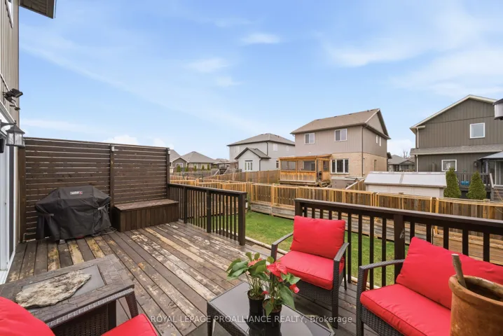 +"PublicRemarks": "Built in 2015 & feels like new. 19 Granite Drive is ideally situated on an interior street, just two blocks from the park offering pickle ball & tennis court, children's play area + open fields to run. This spotless home, with over 2,000 sq feet of finished living space provides everything a family needs & more. Spacious foyer connects from the double garage as well, providing 2 closets & convenient 2 piece powder room. The main living area, quietly tucked to the rear grants 9' ceilings throughout this comfortable space. The impressive kitchen promotes ample cabinet storage & classy staggered upper cupboards upgrade with complimenting backsplash, reverse osmosis drinking water & detached island overlooking the living & dining area. The transom window features allows natural sunlight to filter in & up the stairs via the strategic custom wall opening. Upper level provides 3 great sized bedrooms, the primary with a massive walk-in closet & 3 piece ensuite offering a step in shower with bench seating. The function continues with a large 4 piece bath and dedicated laundry room complete with widow & laundry sink. The perks extend into the basement with freshly finished recreation & bonus room, currently enjoyed as a gym with two windows offering many future use options to suit your own needs. Enclosed rough-in bath area provides a 4th bathroom option and fabulous storage in the utility room, under stairs area + custom garage shelving. Amazing exterior grants a large deck with gas BBQ line & privacy feature overlooking the fenced in yard, surrounded by raised garden beds & convenient side gate access on each side. Enjoy the fun children's play structure & the fruit offerings from the honeycrisp apple, bartlett & bosc pear trees. Potter's Creek is a family friendly neighbourhood within great proximity to paved walking, biking & roller blading trails, popular schools, shopping, CFB Trenton & the beautiful Bay of Quinte. Open House:Sunday April 19, 11am-12:30pm"