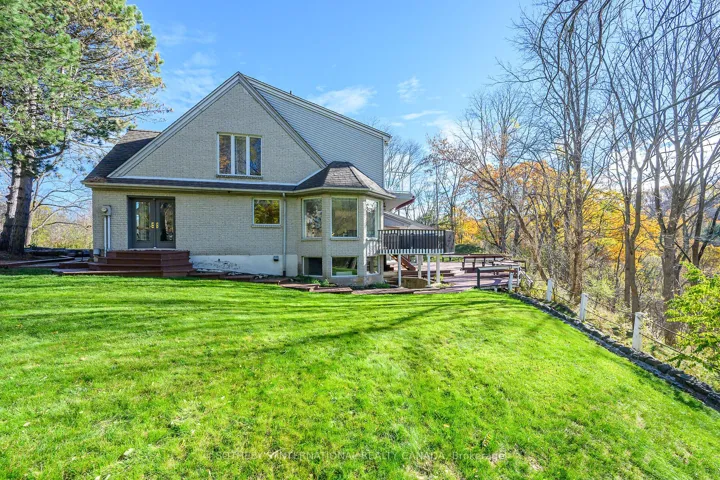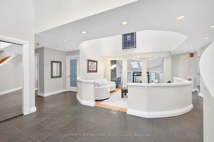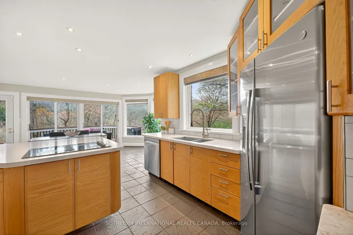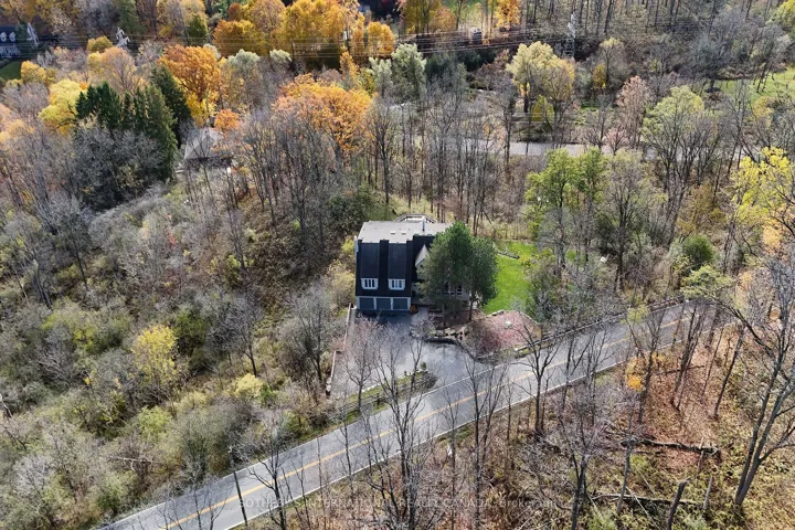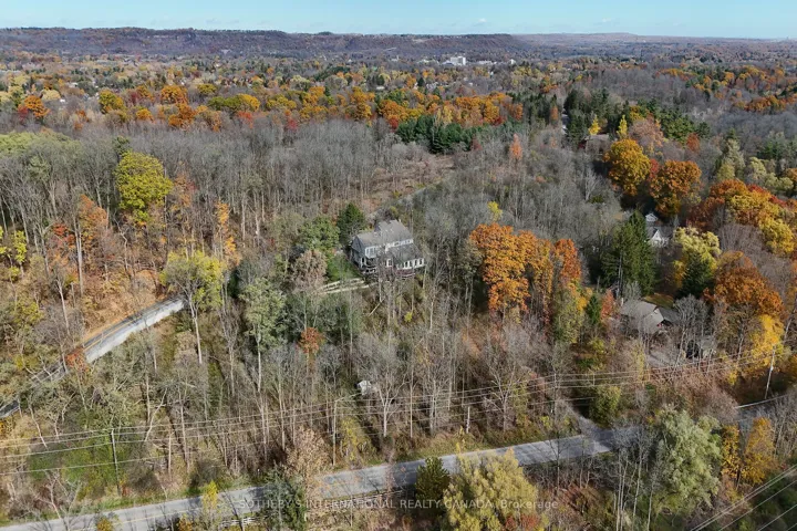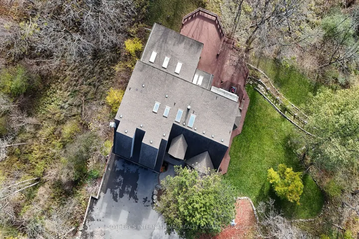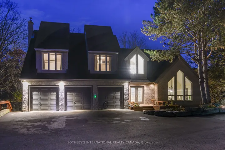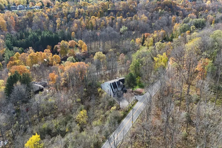 +"PublicRemarks": "Breathtaking Ravine Views Meet Striking Architectural Design Set on over two acres of secluded woodland, this extraordinary custom-built estate blends dramatic architecture with natural serenity. From the moment you enter, soaring 23-ft ceilings and numerous skylights flood the home with sunlight, highlighting sweeping open-concept spaces and elegant curved upper hallways. Picturesque windows capture stunning ravine and forest views, creating a peaceful backdrop throughout. The sunlit main level flows seamlessly into the spectacular indoor heated pool and hot tub-an all-season private oasis ideal for relaxation or entertaining. With more than 7,700 sq. ft. of finished living space, the home offers 5+1 bedrooms. 5 baths and inspired design at every turn. The Scandinavian-style kitchen pairs clean modern lines with tranquil treetop vistas, while a spacious office provides a refined work-from-home retreat. The upper levels continue the architectural drama, culminating in a unique third-floor loft that rises into the canopy-perfect as a studio, reading haven, or memorable bedroom surrounded by elevated woodland and ravine scenery. The lower level enhances the home's resort-like feel with direct pool access, a wet bar, a sixth bedroom, a full bath, and a walkout to the expansive grounds. Recent updates include refinished second-floor hardwood (2023), a new cistern (2022), and a freshly paved driveway (2022). A three-car garage, abundant parking, and a lot stretching from Old Dundas Road to Lower Lions Club Road complete this exceptional offering. A rare fusion of bold design, breathtaking ravine views, and exceptional privacy-yet only minutes from modern conveniences-this estate is a truly unparalleled retreat."