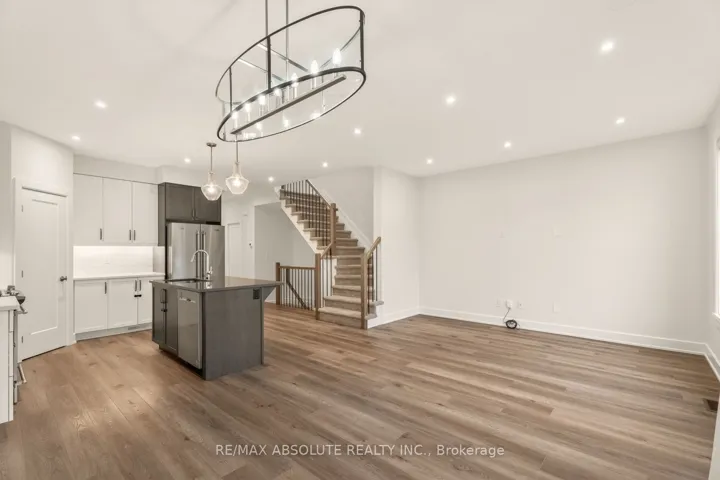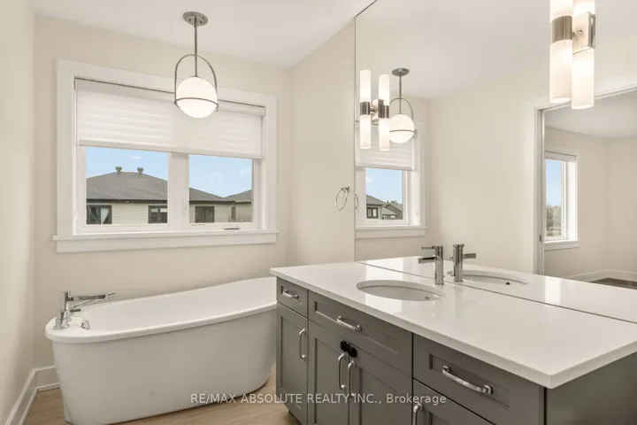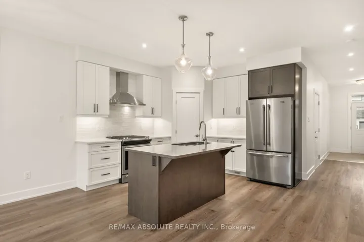 +"PublicRemarks": "OPEN HOUSE SAT 2-4PM//This home is GORGEOUS!! A semi for the price of a town! The stone & stucco front sets this home apart from the average town/semi currently listed! Parking for 2 in the driveway. Beautifully finished home with TONS of upgrades! Tiled entry! Wide plank flooring throughout! The 2 toned kitchen offers white shaker style cabinets that go to the ceiling, the island is a darker finish so it really anchors the space, same dark cabinet frames the stainless fridge, gas stove, white subway tile backsplash, WHITE QUARTZ countertop & island, walk in pantry PLUS stainless appliances. Upgraded lighting & smooth ceilings throughout! Matte black metal spindles can be found on the staircase, the only carpet in the home is on the stairs! HUGE primary & walk in closet! LUXURIOUS ensuite offers a big glass shower with a niche the width of the shower & a free standing tub! 2 additional good size bedrooms, both have large windows The main bathroom offers a tub & shower combo & quartz countertop. Finished lower level & rough in for future bath!"