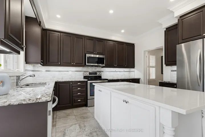 +"PublicRemarks": "Discover the perfect blend of space, design, and functionality in this beautifully upgraded family home offering approximately 3,100 sq ft above grade, located in one of Waterdown's most sought-after neighbourhoods.The curb appeal stands out with clean, well-kept landscaping, a double garage with inside entry, and a private driveway. Inside, the home features 9-foot ceilings, crown moulding, California shutters, designer lighting, and pot lights throughout, creating a bright and refined living environment. The main floor offers a well-designed layout with an expansive combined living and dining area, ideal for both everyday living and formal entertaining, a dedicated home office, and an inviting family room anchored by a gas fireplace. The massive kitchen is designed for everyday living and entertaining. It features granite countertops, a large centre island with quartz surface, custom cabinetry, stainless steel appliances, subway tile backsplash, and porcelain tile flooring-seamlessly connecting the main living spaces and perfect for hosting. Upstairs, the expansive primary suite features his and hers walk-in closets and a beautifully upgraded 5-piece ensuite with a soaker tub, separate his and hers vanities, a glass walk-in shower, and porcelain tile finishes. Three additional well-sized bedrooms complete the upper level, including one with its own private ensuite, while the remaining two are connected by a Jack-and-Jill bathroom, offering a practical and family-friendly layout. The backyard is thoughtfully designed for both relaxation and entertaining, featuring a stamped concrete patio with a custom curved edge, complemented by low-maintenance landscaping, defined garden beds, and sculpted plantings that create a private and polished outdoor setting. Located close to parks, schools, and everyday amenities, this home delivers exceptional space, layout, and functionality in a prime Waterdown location."