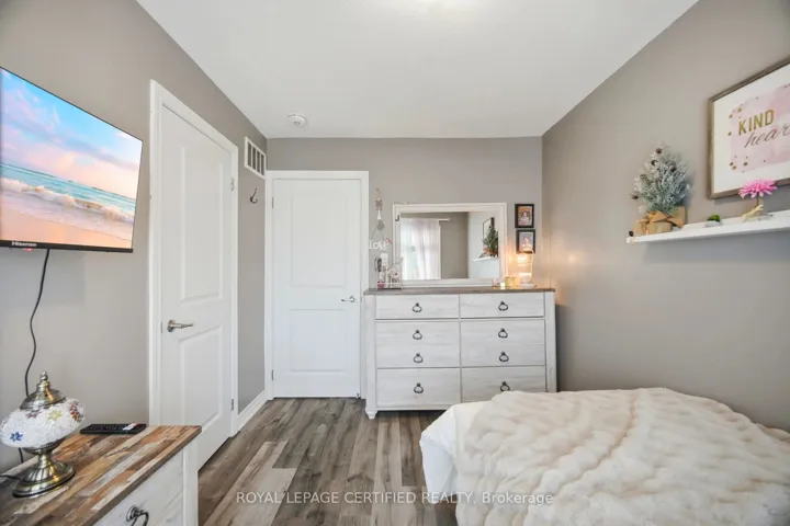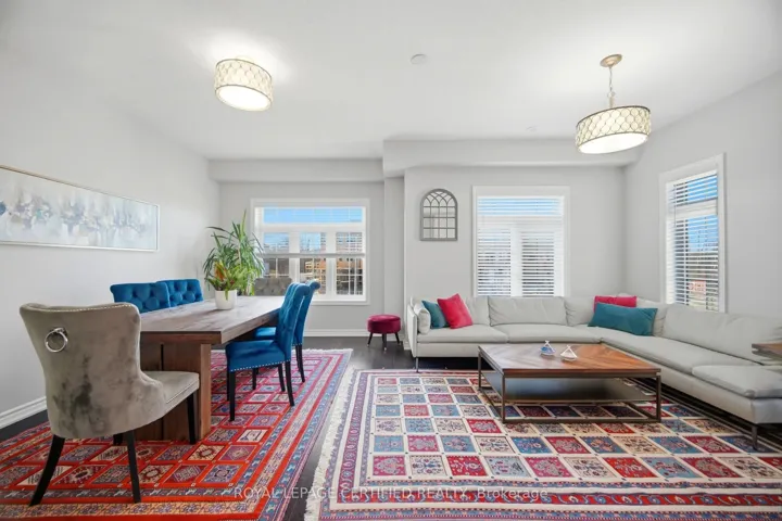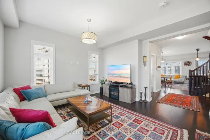 +"PublicRemarks": "This stunning freehold corner townhouse in desirable Waterdown West offers over 2,300 sq. ft. of beautifully finished living space and showcases more than $50,000 in premium upgrades making it one of the most refined homes in the community. From the moment you step inside, you'll notice the exceptional attention to detail. The ground level features a bright recreation room with walk-out access to the backyard, along with a versatile den that can easily function as a home office or additional bedroom perfect for today's flexible lifestyle. The main level impresses with 9-foot ceilings, oversized windows, and elegant hardwood flooring throughout, creating a bright and open atmosphere. The upgraded interior doors further elevate the home's modern appeal. Designed with both style and function in mind, the chef-inspired kitchen boasts stainless steel appliances, a large granite island, upgraded cabinetry, and sleek modern hardware and fixture ideal for entertaining or everyday living. Thoughtful upgrades such as custom closet organizers and roll-down blinds throughout add both convenience and sophistication. Step outside to your private backyard retreat, professionally landscaped with a custom wood privacy fence and interlock patio perfect for relaxing or hosting guests. Ideally located next to the scenic Borers Creek Trail and just minutes from downtown Waterdown's charming shops and restaurants, this home also offers easy access to parks, trails, Highway 403, and the GO Station. Property additional features includes central vacuum, ethernet installations and cable points all installed by the builder."