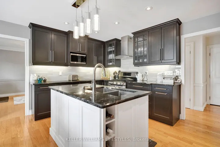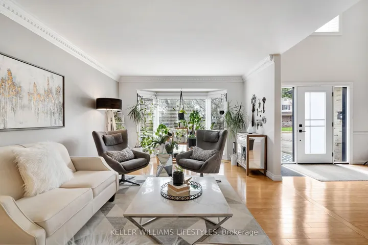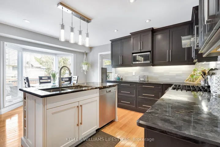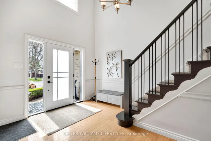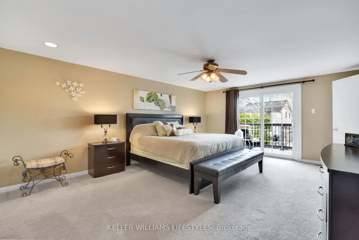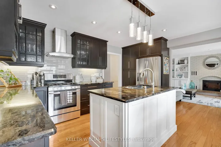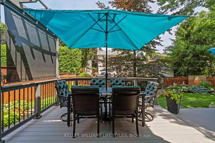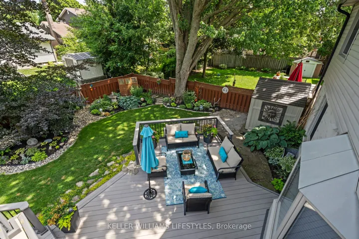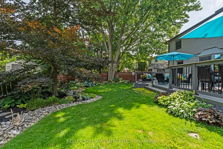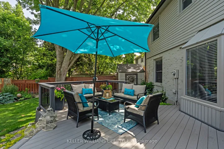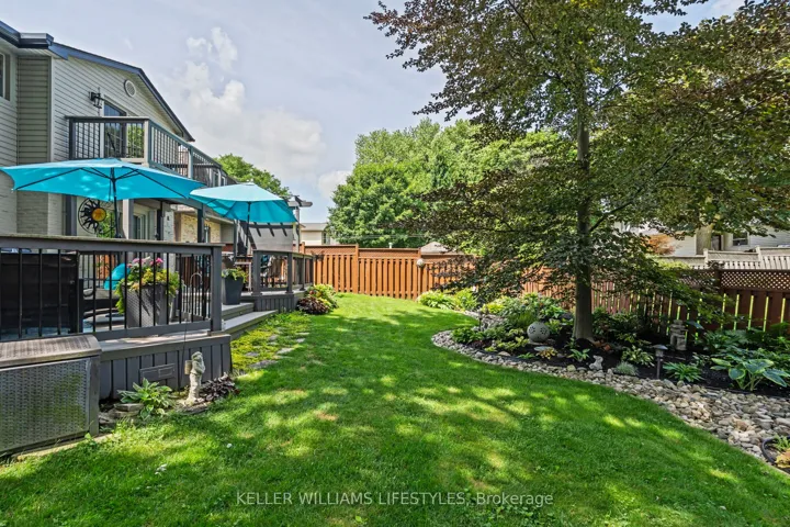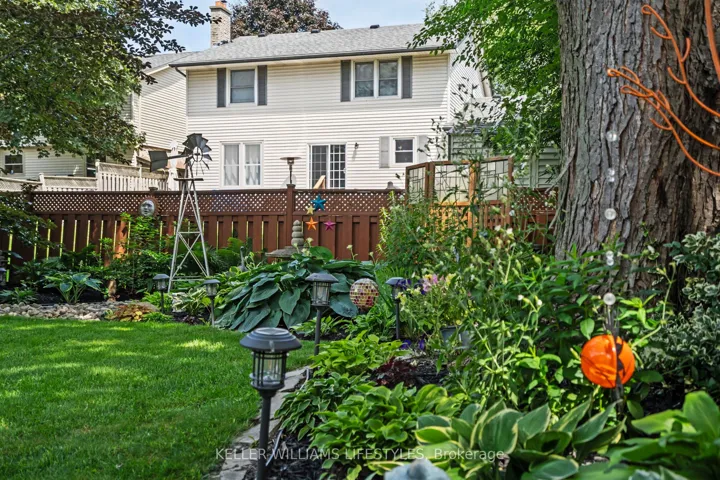 +"PublicRemarks": "Nestled in a highly sought-after neighbourhood, this impressive two-storey family home offers the perfect blend of space, style, and quality craftsmanship. Featuring four generously sized bedrooms, the home welcomes you with rich hardwood flooring throughout the main level and an abundance of natural light that fills the spacious Entranceway and living room. The heart of the home is a stunning chef's kitchen, complete with granite countertops, a centre island, and ample workspace-ideal for both everyday living and entertaining. The inviting family room showcases a beautiful fireplace framed by custom built-in cabinetry, creating a warm and elegant gathering space. Upstairs, the primary suite is a true retreat, highlighted by a private balcony overlooking the expansive backyard and meticulously maintained gardens. The recently renovated 4-piece ensuite offers a spa-like experience with a walk-in glass shower and a stylish "his and hers" vanity. Outdoor living is equally impressive with a two-tiered composite deck, perfect for relaxing or hosting guests. Thoughtful upgrades are evident throughout the home, including a refined front entry system, new carpets in the bedrooms and solid wood trimwork throughout, reflecting pride of ownership and attention to detail in every corner. The location will thrill you as well with a park just steps away, excellent schools in the neighbourhood and access to all your daily shopping needs and the 401 only minutes away."