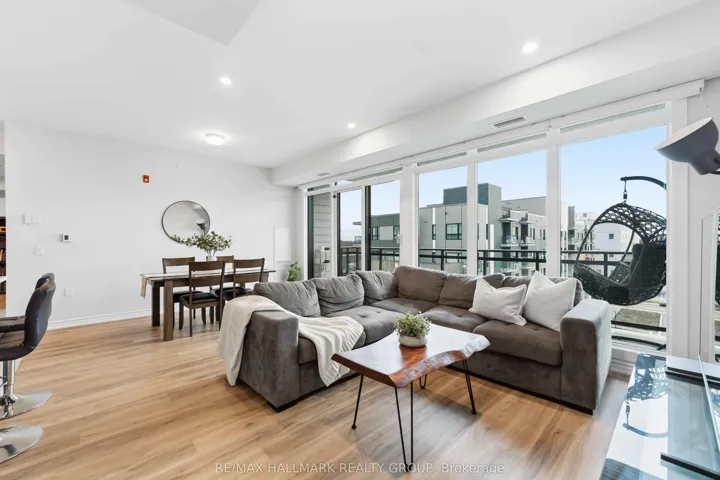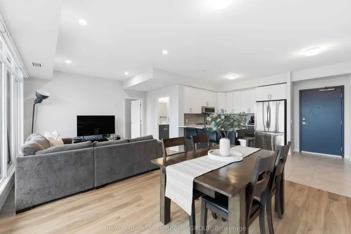 +"PublicRemarks": "Welcome to this stunning top-floor 2-bedroom + den, 2-bathroom condo offering 1,211 sq. ft. and $39K in premium upgrades. Enjoy stylish luxury vinyl flooring throughout, tile in the kitchen and baths, and a beautifully upgraded kitchen featuring ceiling-height cabinetry, pots & pans drawers, quartz countertops, and high-end stainless steel appliances, including a full-sized fridge and double oven. Bright open-concept living/dining space with floor-to-ceiling windows and pot lights creates an inviting, modern feel. The spacious primary bedroom includes a walk-in closet and a spa-inspired ensuite with an upgraded shower and tall quartz vanity. The second bedroom offers its own walk-in closet and custom blinds, while the den with added lighting is perfect for a home office or cozy retreat. Full-sized washer/dryer with additional storage adds everyday convenience. Step out onto your private balcony to unwind, and enjoy the added benefits of parking and a storage locker. Ideally located just minutes from downtown Ottawa with easy access to transit, highways, parks, shopping, and more-this home truly checks all the boxes. Includes parking and a locker."