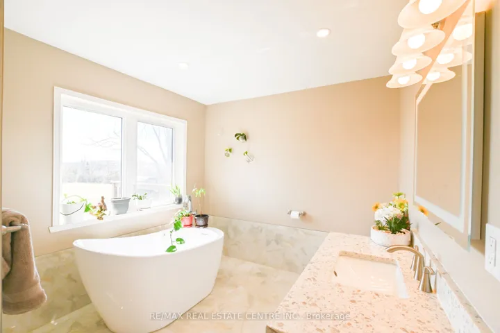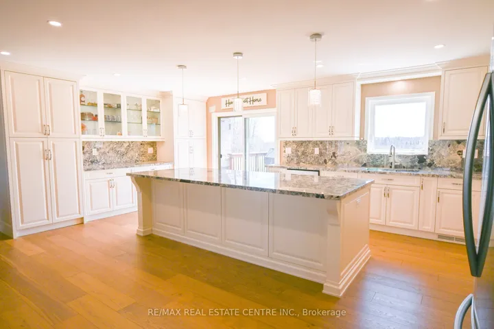 +"PublicRemarks": "This one of a kind custom bungalow showcases high end luxury finishes rarely seen, offering a timeless warmth and elegance designed to suit any generation. Perched high on a hill and surrounded by complete privacy, the home enjoys breathtaking views in every direction.The thoughtfully designed main level features a highly desirable layout, with the primary suite and exquisite en-suite privately positioned at one end, and two additional bedrooms with huge 4 x 8 closets located at the opposite end of the home. Full length windows throughout flood the space with natural light, creating a bright and inviting atmosphere.At the heart of the home, exceptional craftsmanship is evident in the extra thick, solid wood cabinetry and the oversized granite island-perfect for family gatherings and entertaining. The open concept living space flows seamlessly to a large deck overlooking uninterrupted scenic views. White engineered oak flooring runs throughout the home, while tiled bathrooms feature beautiful fixtures that truly set this property apart.Garden enthusiasts will appreciate the ample opportunity to expand upon the existing raised garden boxes. The lower level down the extra wide ( 4ft) stairs offers a walk out with mostly finished space, ready for your customisation and creative vision.Set on nearly two acres, this impressive stone home features a metal roof with snow stoppers, providing durability and low maintenance. With separate entrances and a spacious lower level, the property offers excellent potential for multi generational living or simply enjoying a superior quality home at an affordable price. * lower Bathroom will be finished and armour stone added to the front step."