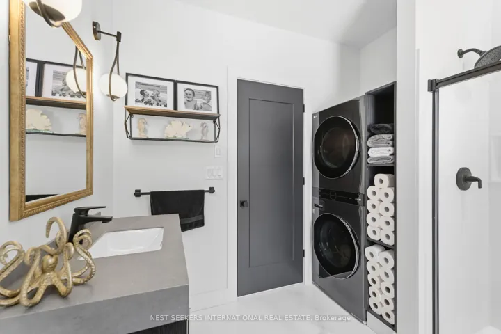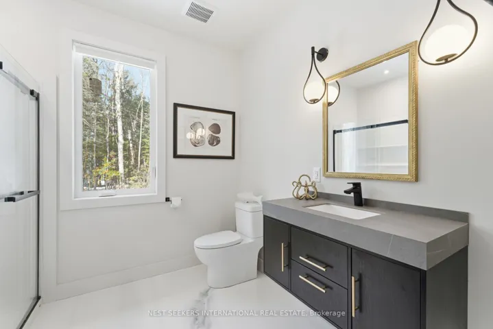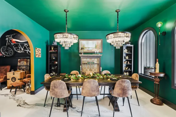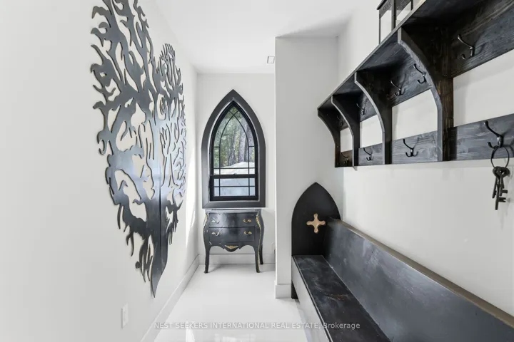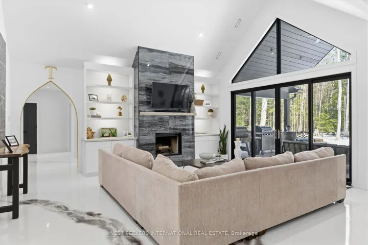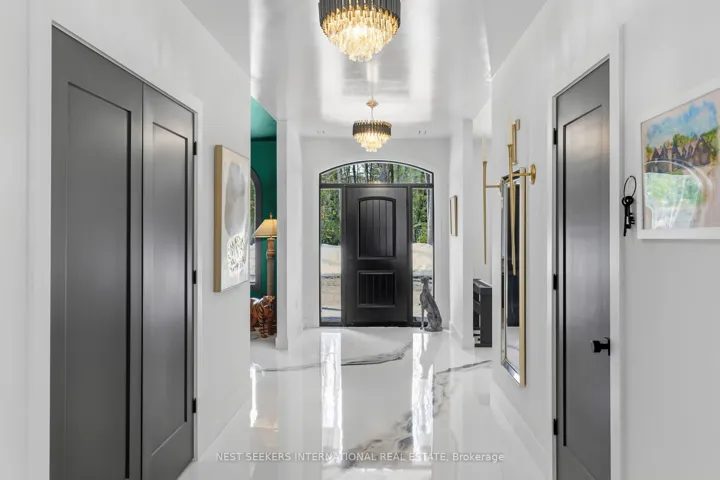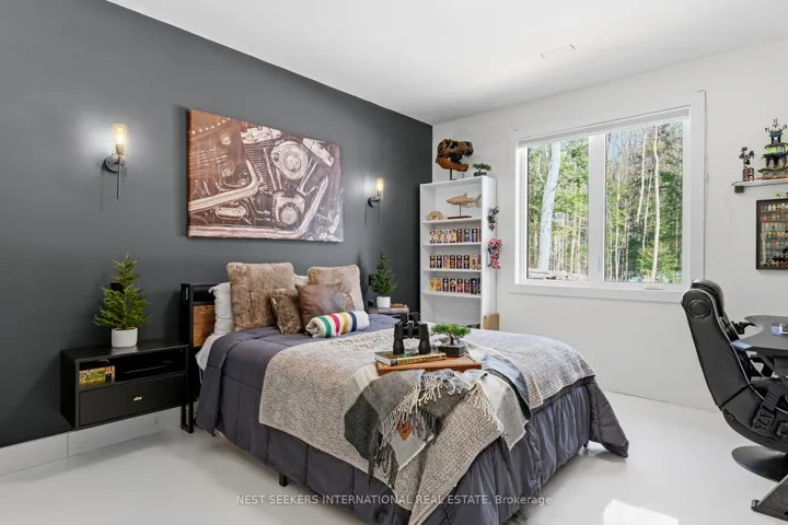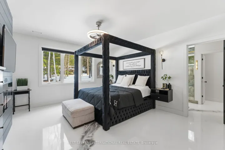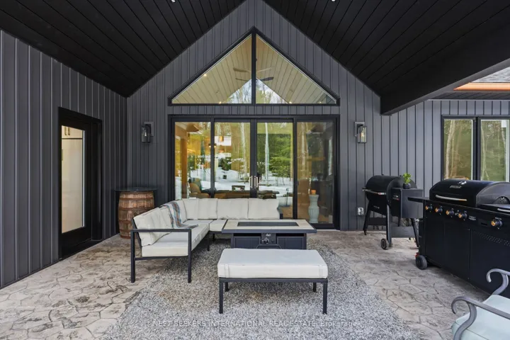 +"PublicRemarks": "** Watch Listing Video ** Welcome to 1017 Davis Drive in Severn Bridge, an exceptional custom-built bungalow loft estate set on 7.6 acres of private, tree-lined land with walking trails and a 600-foot driveway offering ample parking. Designed with both luxury and functionality in mind, this home features a dual primary suite layout, ideal for multigenerational living, guests, or enhanced privacy. Offering 4 spacious bedrooms, all with walk-in closets, two of the primarys with well-appointed bathrooms including a 3-piece ensuite with tub and a 4-piece with laundry in the closet, the home is finished with 9-foot ceilings and seamless epoxy flooring throughout. The custom kitchen proves a statement with its GE Café appliances, while boasting a 12 ft island, perfect for entertaining. The kitchen is complemented by a functional butler's pantry with a sink and commercial ice maker. Radiant in-floor heating extends throughout the main floor living space and garage via a boiler system, with central air conditioning delivered through an air handler and duct system. A flex space that you can have as a dedicated home gym or home office adds to the lifestyle offering, while water quality is enhanced with a Viqua system featuring dual filters with UV light, an iron filter, and a water softener. Exterior features include a refined blend of metal and vinyl siding, an asphalt roof, a stamped concrete covered front porch (254 sq ft), rear covered lanai (365 sq ft), additional patio (468 sq ft), and a 180 sq ft wood pool deck.The insulated garage offers 754 sq ft with 10-foot ceilings, two 9x9 doors with openers, radiant heat, and a finished 480 sq ft loft above. Spray foam insulation in walls and blown-in attic insulation ensure year-round efficiency. A unique Custom Muskoka home that delivers privacy, quality craftsmanship, and a refined country lifestyle just minutes from both Gravenhurst and Orillia amenities."