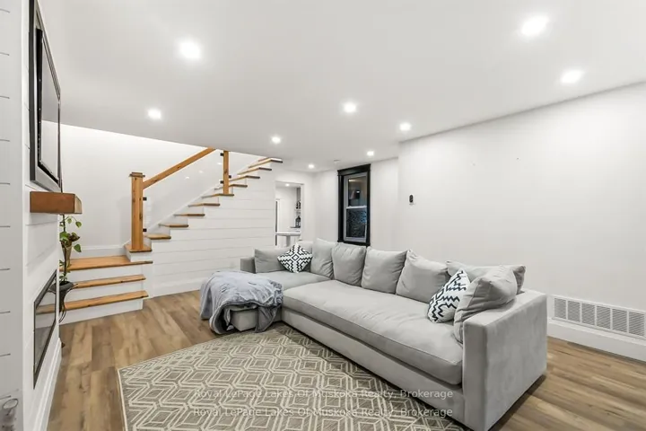 +"PublicRemarks": "**FULLY RENOVATED IN-TOWN BRACEBRIDGE HOME **This beautifully rebuilt 3bdrm home in the heart of Bracebridge blends modern upgrades with Muskoka charm, surrounded by mature trees and privacy. Stripped to the studs and reimagined with over $150,000 in professional renovations (all with permits and certified contractors), every detail has been designed for comfort, efficiency, and style. The main floor features a brand-new living room with pot lighting, a custom fireplace with Napoleon insert and recessed TV box, and a stunning staircase crafted from 100-year-old reclaimed hemlock with glass inserts. Luxury vinyl plank flooring runs throughout, complemented by a ducted natural gas furnace for efficient heating. The bright kitchen opens to a tranquil 3-season Muskoka room, leading to a private deck, firepit, and fully fenced in backyard, perfect for entertaining or relaxing. Upstairs, the primary and second bedrooms are newly built, each with custom closets and pot lights, while the primary also includes a recessed TV box. SO MANY UPGRADES to mention (new roof in 2021, updated insulation, plumbing, electrical, windows, smart thermostat, and all appliances are <3yrs old). With space to add a powder room on the main floor or a garage on the lot, there is room for future growth. So central, so convenient. This home offers both modern convenience and timeless Muskoka character.- ready to move in and enjoy!"