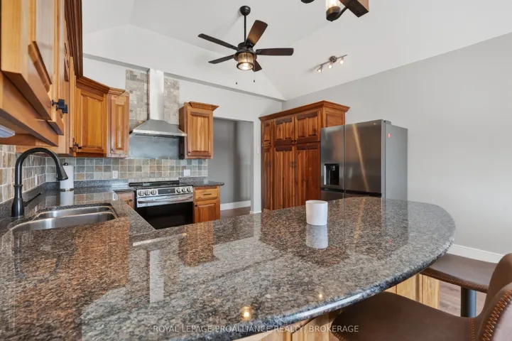+"PublicRemarks": "Welcome to 27 Collins Drive, a beautifully designed home in sought-after Rockwood Shoreline Estates. Set on nearly 2.5 acres of private, natural surroundings, this bright, open-concept residence offers over 3,500 sq ft of finished living space. The main level features granite countertops and stainless-steel appliances in the kitchen, along with generous living areas ideal for everyday living and entertaining. With 4 bedrooms and 3 full baths, the home provides exceptional flexibility for families, guests, or multi-generational living. A standout feature is the full in-law suite with its own kitchen, spacious bedroom with ensuite, and dedicated laundry-perfect for extended family or independent living. Additional highlights include main-floor laundry, easy backyard access, and a private rear deck for outdoor relaxation. Residents also enjoy exclusive deeded access to Collins Lake for swimming, paddling, and fishing. A rare opportunity to enjoy space, versatility, and a peaceful lakeside lifestyle."
