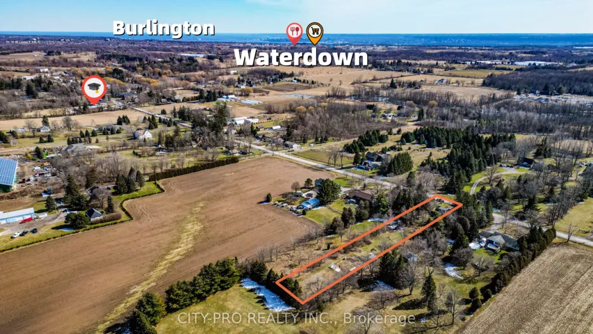 +"PublicRemarks": "Rare opportunity to own a deceptively spacious country home set on just over 1 acre in desirable Flamborough. Tucked away on a quiet concession, this property offers the perfect balance of privacy, usable land, and convenience - just minutes to Waterdown, Burlington, Hamilton, and Ideal for commuters with easy access to Hwy 401 (approx.10-15 mins) and Aldershot GO Station(~20 mins).The bright, updated main level features a large bedroom and full bath, complemented by hardwood flooring, cove moulding, and timeless character details. The spacious kitchen is equipped with solid wood cabinetry, concrete countertops, stainless steel appliances, and a premium stove - ideal for everyday living and entertaining.Upstairs offers exceptional flexibility with two additional bedrooms and a full bath, or can be configured as a private primary retreat with a dressing area.The finished basement adds valuable living space with additional bedrooms, a rec area, laundry, and ample storage - ideal for extended family or multi-functional use.Step outside to a deep ~570 ft lot designed for lifestyle and utility. Enjoy multiple seating areas, fire pit, vegetable garden, greenhouse, and fenced space for pets. The detached garage, currently used as a workshop, offers excellent versatility and can be converted back if desired. Additional outbuildings provide further storage and potential.An exceptional opportunity for end-users, hobby farmers, or those seeking space, privacy, and long-term upside in a prime rural location."