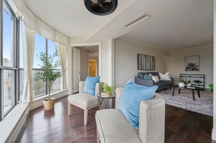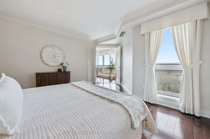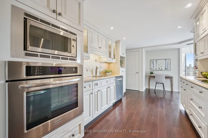 +"PublicRemarks": "Unbelievable views from this 10th floor corner unit at the Beechmount, located in Waterloo. This gorgeous 2 bedroom, 2 bath condo has been lovingly updated with custom cabinetry, crown moulding, engineered hardwood and stone countertops. This extremely spacious unit offers a large living room, dining room (or office), plus a sunroom that has floor to ceiling windows overlooking the trees and ravine below. The expansive primary bedroom has a stunning ensuite bathroom with large glass shower and beautiful built-in closets. Heated floors in both bathrooms and the main bathroom features a clever built-in laundry area. The second bedroom is perfect for a home office, guest room or den. Patio doors from the 2nd bedroom lead to the covered balcony with northwest views over the city. 2 underground parking spaces, plus a private locker. Building amenities include a guest suite, workshop, party room, billiard room, library, car wash bay, bicycle storage and lots of visitor parking. You can't beat this location with proximity to Waterloo Park, the University of Waterloo, Westmount Plaza, and public transit."