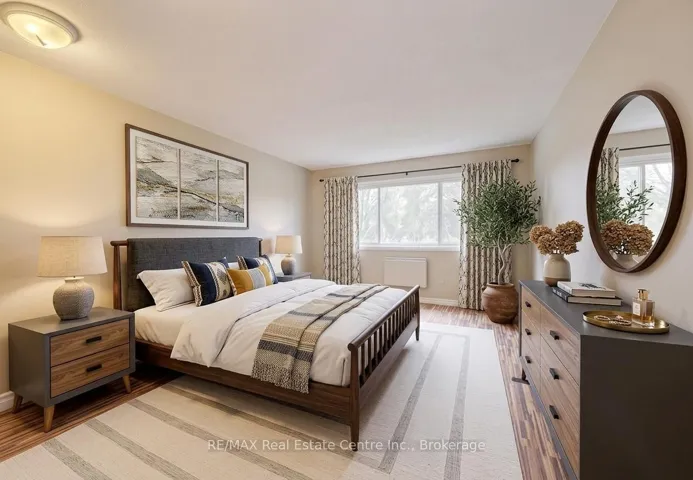 +"PublicRemarks": "Welcome to Scottsdale Mews...quietly tucked away in the middle of everything! This well maintained, carpet-free home offers a perfect blend of comfort, quiet, functionality, and location. Featuring two spacious bedrooms, two and a half bathrooms, and a flexible finished basement, this property is ideal for professionals, downsizers, young families, and investors alike. Step inside to discover a bright, spacious, and inviting layout with large windows that fill the home with natural light and provide a view of the greenspace beyond your private patio. Your new kitchen boasts updated and extended cabinetry for ample storage, along with a convenient built-in desk, perfect for managing daily tasks, or as a kids' homework space. The large living room provides plenty of space to relax or entertain, while the separate dining area is ideal for hosting family meals and gatherings. Upstairs, both bedrooms are big enough for king sized beds and include built-in closet organizers to keep everything neatly in place. Downstairs, the fully finished basement expands your living space even further, with two separate finished spaces, and a full bathroom, perfect for guests, a home office, or a media room. Enjoy the outdoors in your private patio area, surrounded by lovely gardens, across from greenspace, and equipped with a BBQ for summer entertaining. Additional highlights include forced air natural gas heating and central air conditioning for year-round comfort. Located within walking distance of the University of Guelph, Stone Road Mall, and all the amenities along Stone Road. Additionally, the ideal location offers quick access to the Hanlon Expressway, and has public transit right at the entrance, making commuting and everyday errands a breeze. 60 Wilsonview Ave., offers a fantastic opportunity to own a move-in-ready home in a prime location."