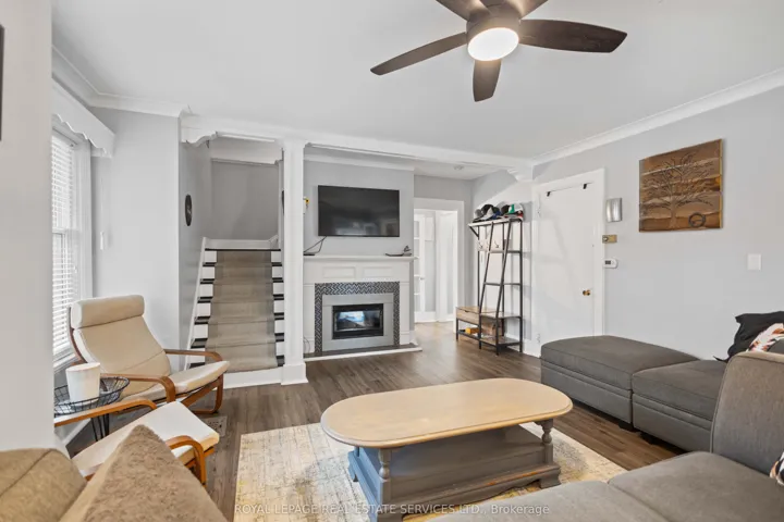 +"PublicRemarks": "Welcome to this well-maintained 1.5-storey home situated on a 50 x 129.38 ft lot in a desirable Brantford neighbourhood. Bright and functional layout features a spacious living room with a gas fireplace, a kitchen with stainless steel appliances, and a separate dining area. Upper level offers comfortable bedrooms, while the fully finished basement provides additional living space and lower-level laundry. Enjoy the private backyard with a concrete patio and awning, ideal for outdoor entertaining. Detached garage and ample driveway parking. Key updates include the roof (approx. 8 years old) and front room windows (2021). Conveniently located close to schools, shopping, and amenities, with easy highway access. Just minutes to Mohawk Park offering trails, green space, and family-friendly recreation."