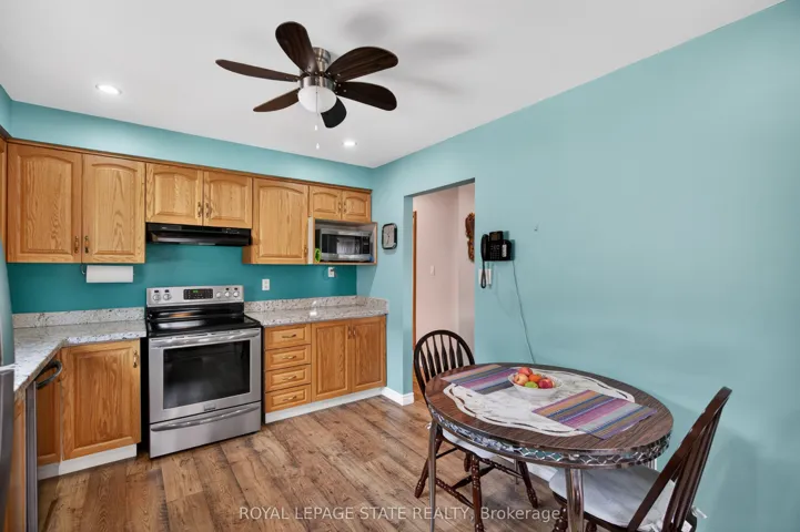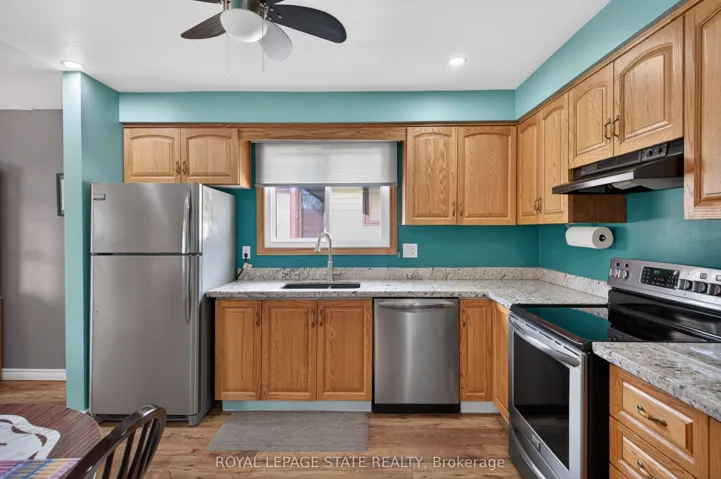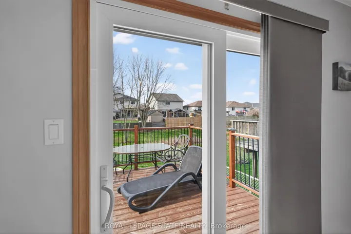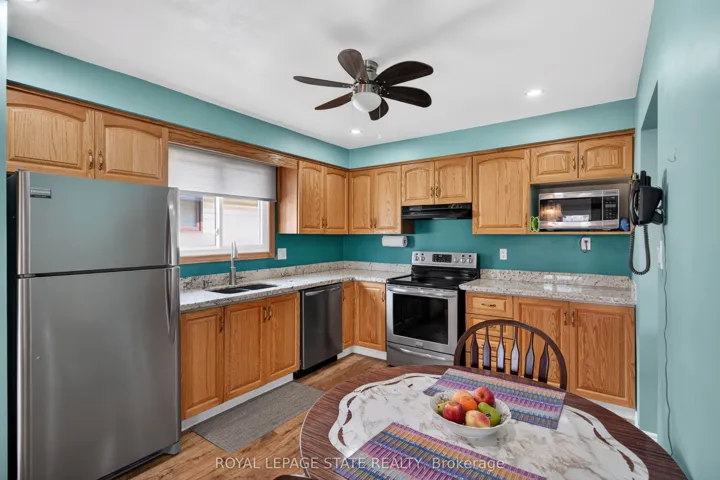 +"PublicRemarks": "Welcome to this well-maintained 2+1 bedroom, 2 bathroom raised ranch, ideally situated on a quiet street in the charming town of Caledonia. Set on a mature 60.04' x 104.99' lot backing onto green space, this property offers a rare blend of privacy, functionality, and lifestyle appeal. The home features surfaced parking for 4+ vehicles along with a bonus double car garage with convenient inside entry. A large covered front porch leads into a breezeway and welcoming front door with a sidelight window, filling the spacious foyer with natural light. Just a few steps up, the main level opens into a bright, open-concept layout designed for everyday living and entertaining. Enjoy a spacious living room with a beautiful bay window, a dedicated dining area with sliding doors to an oversized rear deck, and an eat-in kitchen complete with updated countertops, stainless steel appliances, and pot lighting. The primary bedroom offers an oversized closet, complemented by an additional generously sized bedroom and a 4-piece bathroom with a skylight. The fully finished lower level adds exceptional versatility, featuring a large recreation room with gas fireplace, retro bar area, a spacious third bedroom with ample storage, and a 3-piece bathroom with a walk-in glass shower. Laundry facilities and additional storage complete the space. Step outside to a large, private backyard with a storage shed - perfect for relaxing or entertaining. Noteworthy updates include kitchen appliances (2016), many windows and the rear sliding door (2018), roof shingles (2019), and laminate flooring (2020). Located on sought-after Mac Crae Drive, residents enjoy a peaceful, family-friendly setting with easy access to parks, schools, and the Grand River. Caledonia offers a strong sense of community while remaining just a short drive to Hamilton, providing convenient access to urban amenities, major routes, and commuter options."