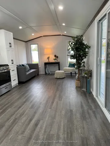 +"PublicRemarks": "Gorgeous 2 bedroom home with an oversized private backyard shaded with tall, soaring mature trees is sure to spark interest for those who enjoy a smaller home & the outdoors. Enjoy summer days under the covered deck or walk to the lakefront & watch the Lake Huron water traffic. Swim in the inground community pool, bask in the sun at the sandy beach or take part in the community events hosted often in the clubhouse or well kept community areas of the park.. Completely renovated from front to back! Modern flair drenches this home for those who enjoy living tiny. This year round home is located in Lighthouse Cove minutes from Bayfield, golf course & the beaches of Lake Huron. Renovations in 2023 include all new insulation in the walls, LVP flooring, walls, doors, hinges, knobs, trim, bathroom vanity, raised toilet, white tiled shower, on demand water heater (owned), washer & dryer, recessed lighting inside & decorative lighting on the covered porch. Step inside the brightly lit living area surrounded by all new windows & patio door to find the crisp white new kitchen, countertop & stainless steel 36 fridge, gas stove & dishwasher. Lots of room for your dining room table or add a kitchen island. The living room accommodates a 3 piece sofa, your favourite chairs & electrical outlet to mount your TV. There is lots of closet space in the foyer and both bedrooms. The primary bedroom easily fits a queen size bed, nightstands and a dresser while the second bedroom would be a great space for a murphy bed, office space or craft room. New roof (2021), newer furnace and brand new mini split AC (2023). If you are looking to live along the shores of Lake Huron in an adult (55+) land lease community this little piece of paradise is ready for occupancy! Call your Realtor today to book a private viewing."