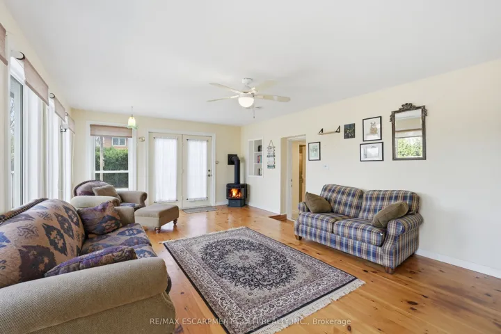 +"PublicRemarks": "Welcome to this beautifully maintained home offering excellent curb appeal, a large driveway, and a spacious attached garage, along with wide gated side-yard access ideal for boat parking or additional outdoor storage, all set on a mature lot in a quiet family-friendly neighbourhood. Step inside to a bright and inviting layout featuring oak plank flooring throughout the main and second floors, pot lights throughout, and ceiling fans adding comfort and functionality across the home. The main level offers a spacious living room filled with natural light along with a large dining area perfect for hosting family gatherings and entertaining. The generously sized kitchen features built-in appliances, ample cabinetry, and excellent workspace while maintaining an open flow into the principal living areas. Upstairs you'll find three well-sized bedrooms and a full bathroom, creating a comfortable and practical layout for families. The lower level features a versatile bedroom or office space, ideal for guests, a home office, or multi-generational living. One of the standout features of the home is the massive sunroom addition complete with a cozy gas fireplace and walkout to the elevated deck, offering the perfect space to relax year-round while overlooking the backyard. The finished basement includes a beautifully updated recreation room with new laminate flooring, providing additional living space ideal for movie nights, a play area, or entertaining. Step outside to enjoy the large private/tree-lined backyard featuring extensive garden space, mature greenery, and a spacious deck with gazebo, perfect for outdoor dining, relaxing, and enjoying the peaceful setting. Located in a desirable Simcoe neighbourhood close to parks, schools, shopping, and everyday amenities, this home offers the perfect blend of comfort, space, and convenience. Furnace 2024, Heat Pump 2024, HWT owned 2023, basement flooring 2026."