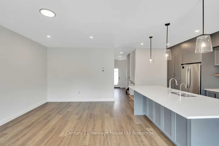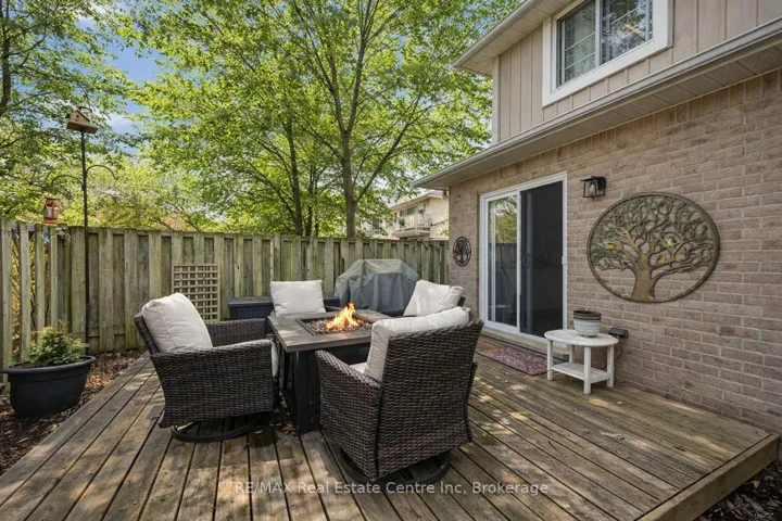 +"PublicRemarks": "Beautifully renovated 2-bdrm, 3.5-bath townhome offering stylish move-in-ready living in highly desirable community W/in-ground pool & tennis/pickleball courts! From the moment you step inside you'll notice warmth of hardwood flooring & thoughtful updates throughout. Eat-in kitchen W/sleek grey cabinetry, tile backsplash, S/S appliances & lots of counter space. Rustic wood display shelving adds character while the bay window nook creates perfect spot to enjoy morning coffee surrounded by natural light. Formal dining area offers elegant setting for entertaining W/stunning light fixture & sliding doors that lead to private backyard creating seamless indoor-outdoor flow. Living room W/gas fireplace & custom B/I shelving-perfect place to unwind at the end of the day. Convenient 2pc bath completes this level. Upstairs the primary bdrm offers hardwood, large windows & W/I closet. A versatile nook within the room offers perfect space for a dressing area, home office or reading corner. Ensuite is tastefully updated W/stylish vanity. 2nd bdrm offers custom B/Is & is complemented by 4pc bath W/large vanity & shower/tub. Finished lower level offers incredible versatility W/rec area highlighted by stylish shiplap fireplace & rustic wood mantel creating a warm elevated feel. Updated bathroom W/modern vanity & dedicated laundry room complete this level. Meticulously maintained & thoughtfully updated: furnace 2019, water softener 2021 & HWT 2023. Step outside to private fully fenced backyard W/large deck, mature trees & lots of space to relax & entertain. Residents of this well-maintained complex enjoy access to inground pool, tennis & pickleball courts & visitor parking-all the benefits without the maintenance. Nearby walking path connects to Royal Recreational Trail offering riverside pathways leading all the way to Guelph Lake. Short walk to Riverside Park, nearby golf course & amenities. Complete W/attached 1-car garage this is truly a turnkey opportunity-just move in & enjoy"