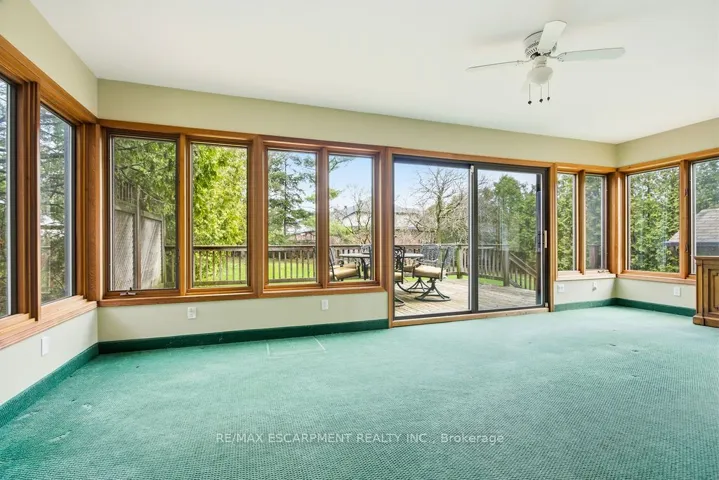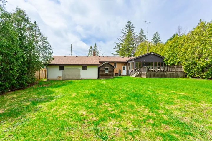 +"PublicRemarks": "Endless potential on this 83' x 200' private treed lot in the Meadowlands. Are you looking for a convenient location all while enjoying a private mature lot? This is your chance to secure one of the last remaining large lots on the street. Live in this well-maintained bungalow as is, renovate it / add on, or look into the potential for development. Many updates include furnace/AC 2018, washer/dryer 2018, water heater 2023, roof 2018, and landscaping approximately 10 years ago. Lovely layout with a formal family room/dining room, bright kitchen and oversized rear sunroom opening up to a nice wood deck. The home has been converted into 2 bedrooms with the opportunity to easily convert back to 3. Updated main floor bath with walk-in shower. Large 2 car garage and existing driveway with parking for 6+ cars. The options here are endless with this home fitting so many different needs. This type of property is increasingly hard to find in this location. Minutes to HWY access, the Meadowlands shopping centre. Hamilton Airport, Redeemer College and schools. Property sold in as-is condition with no representation or warranties."