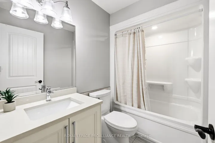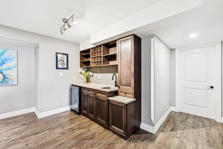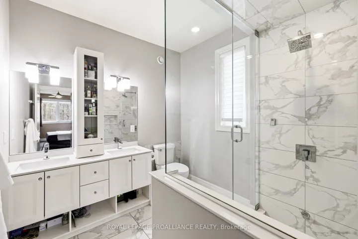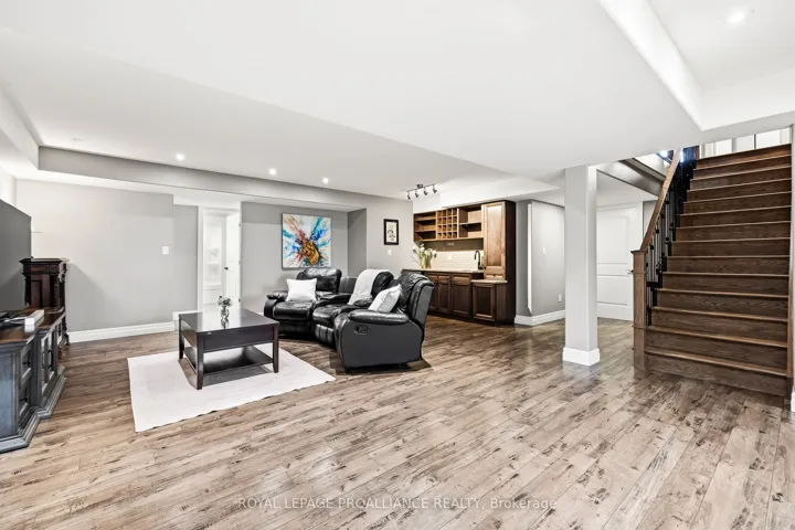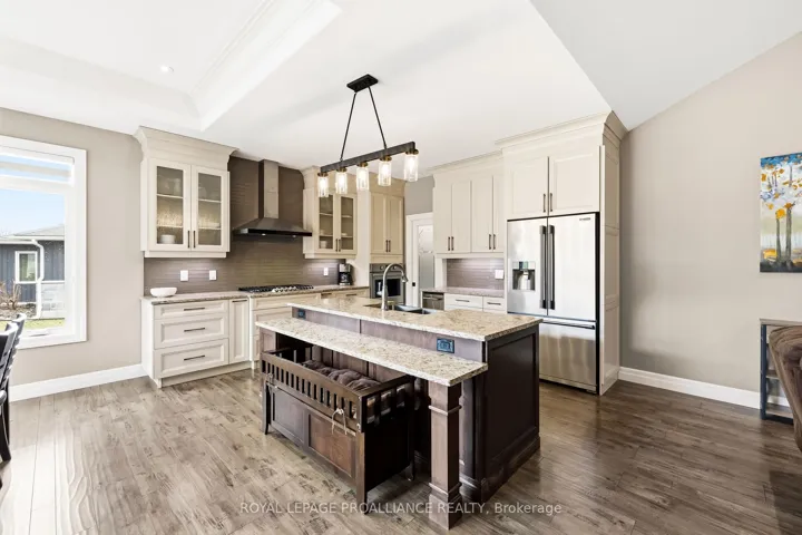 +"PublicRemarks": "Premium home on a premium lot! Situated in Orchard Lane, one of Quinte West's most sought after subdivisions with only single family homes - no townhomes or apartment bldgs. This stunning four bedroom, three bath home with 9 ft ceilings has tens of thousands of dollars in upgrades. Gorgeous living room with vaulted ceiling, fireplace and feature wall. Beautiful kitchen with granite counter tops, island, cabinets to the ceiling with crown moulding, backsplash, gas range, walk-in pantry with coffee station. Spacious primary bedroom features large walk-in closet and gorgeous ensuite with glass & tile steam shower, double vanity with quartz. Other popular features include hardwood stairs, main floor mud/laundry room with quality cabinets AND granite countertop, and plenty of storage. Lower level complete with bright rec room, wet bar w/ granite countertop, 2 additional bedrooms and full bath. Exterior boasts covered porch, plenty of paved parking, double car garage with high ceilings allowing for mezzanine storage, glass in the doors allowing natural light and wired for EV plug. Oversized covered deck offers privacy and screened in area with access to the dining room - plus there is another deck for sitting in the sun... all overlooking your fully fenced rear yard with no neighbours behind. Perfectly located 5 mins to 401, shopping, and schools. 10 mins or less to CFB Trenton, YMCA and Prince Edward County. View the full video walk through to see it all!"