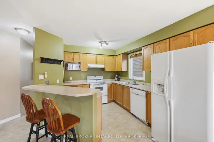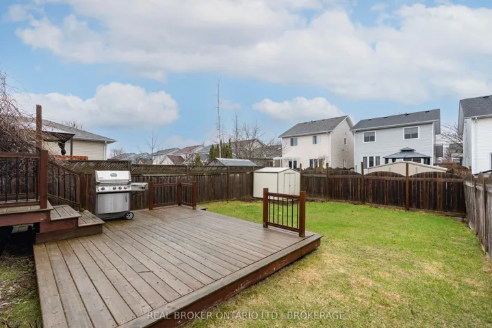 +"PublicRemarks": "Welcome to this beautiful 2 storey home located in Kingston's desirable East End, just minutes from CFB Kingston. This move in ready property offers a smart layout, comfort, and plenty of space for family living. The main floor features a bright open concept design with vaulted ceilings that create a spacious feel. The living room includes laminate flooring, while the functional kitchen offers plenty of cupboard space and a convenient eating bar. The dining and living areas flow nicely together, perfect for everyday living and entertaining. You will also find a bright main floor office, a 2 piece bathroom, and inside entry from the garage. Upstairs, the home offers three comfortable bedrooms, including a large primary bedroom with a walk in closet and private ensuite bathroom. Two additional bedrooms and a full main bathroom complete this level, providing space for the whole family. The lower level is fully finished and includes a rec room, a fourth bedroom, and a laundry area, offering extra space for guests, hobbies, or a growing family. Step outside to enjoy the fully fenced backyard with a 14 x 16 deck, a storage shed, and a gas BBQ connection. The BBQ is and shed are included in "as is" condition, making outdoor living even easier. Recent updates include a furnace (2026), front office flooring 2026, front porch aluminum railing and posts (2020), concrete sidewalk (2020) and roof (2018). Located close to schools, parks, shopping, and all East End amenities, this home offers both convenience and lifestyle."